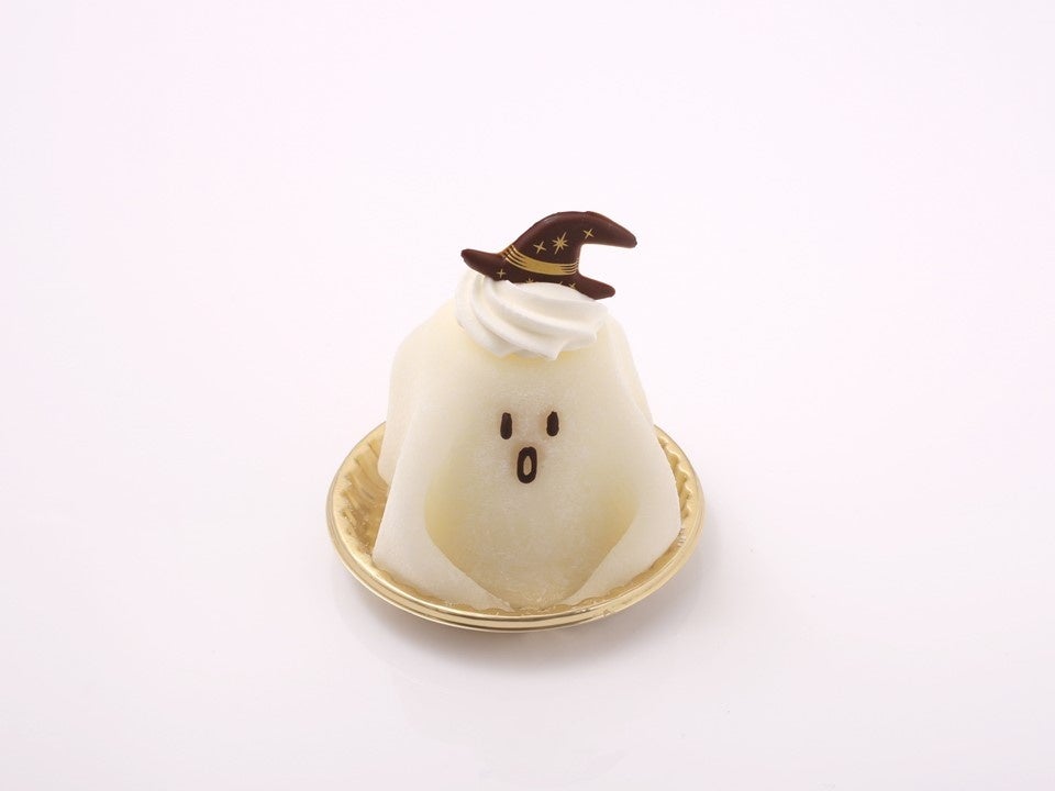 北海道産クリームチーズを使ったレアチーズムースと甘酸っぱいいちごのムースをぎゅうひで包んで可愛いお化けになりました。