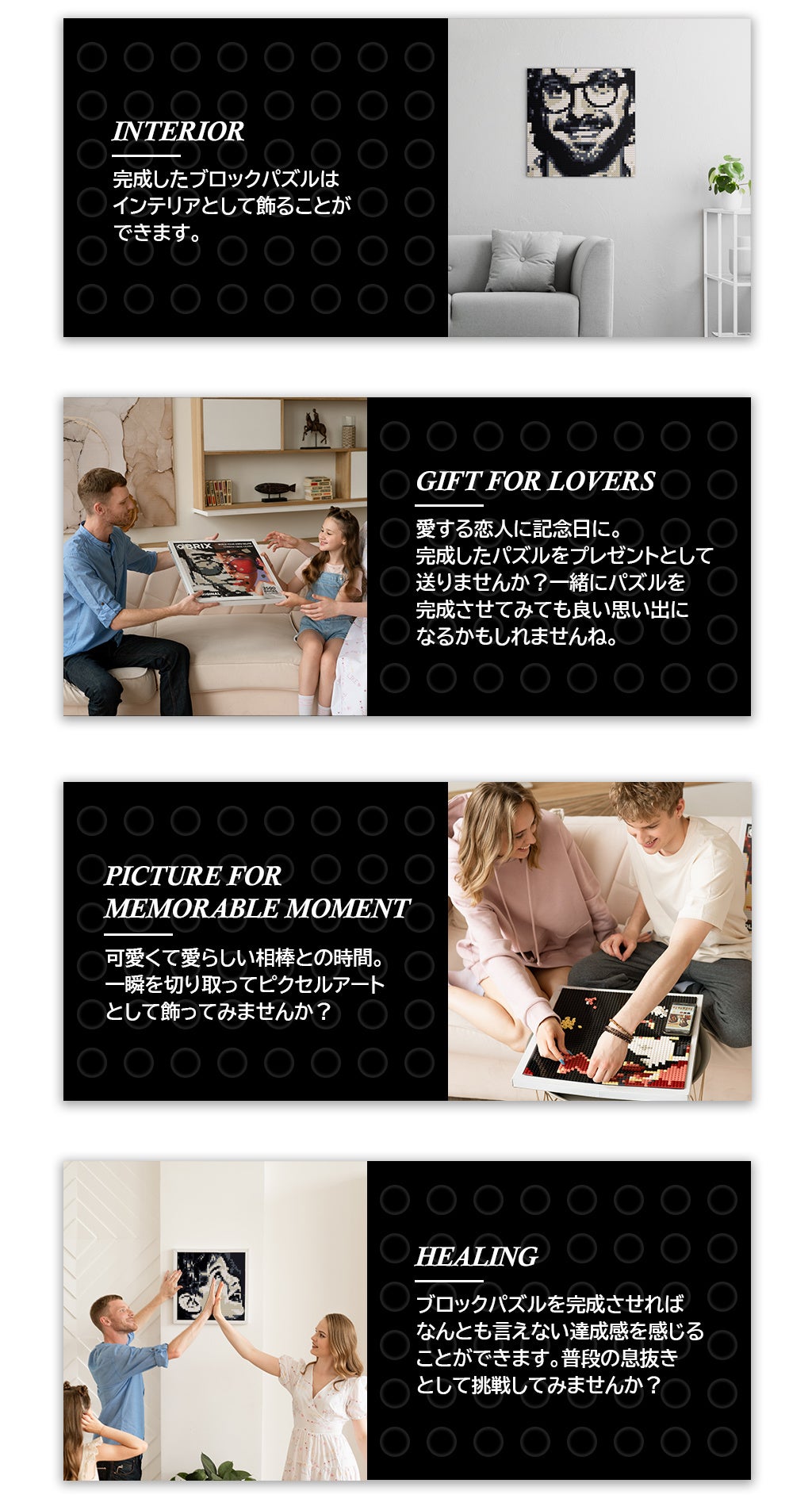 ブロックパズル「QBRIX」は、大切な思い出をピクセルアートで表現できるユニークな立体パズルです。