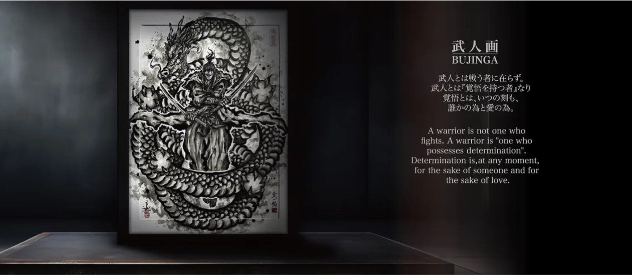 『武人』を戦う者では無く『覚悟を持った者』として捉え、その者の持つ『覚悟』の瞬間を『武人画』として描く。それ以後武人画専門の絵師として戦国武将や武芸者、三国志の豪将を初め、世界的な映画のキャラクター、国内における往年の人気アニメやキャラクターや、様々なジャンルのアスリートまで幅広い人物・キャラクターの「覚悟の瞬間」を「武人(覚悟を持つ者)」として捉え、数多くコラボされている。
