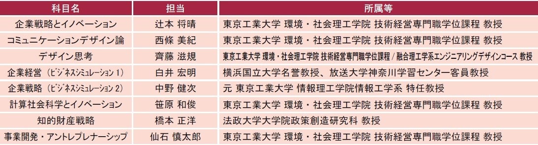 事業主体: 環境・社会理工学院(技術経営専門職学位課程)