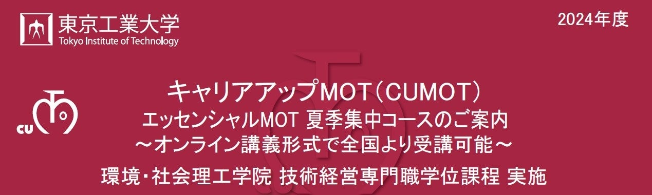 東京工業大学 社会人向けMOT(技術経営)講座「エッセンシャルMOT夏季集中コース(全20回)」が6月に開講!