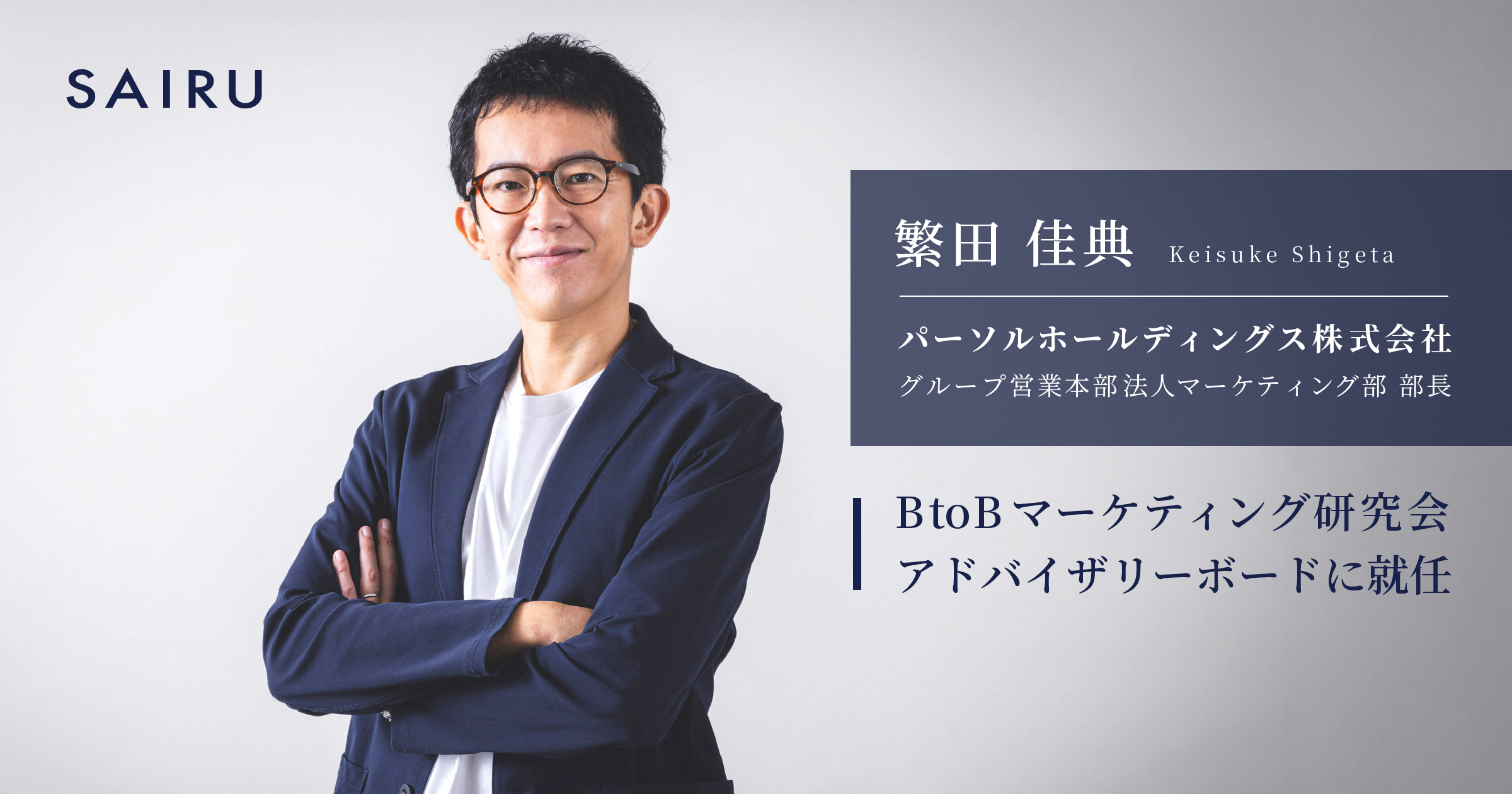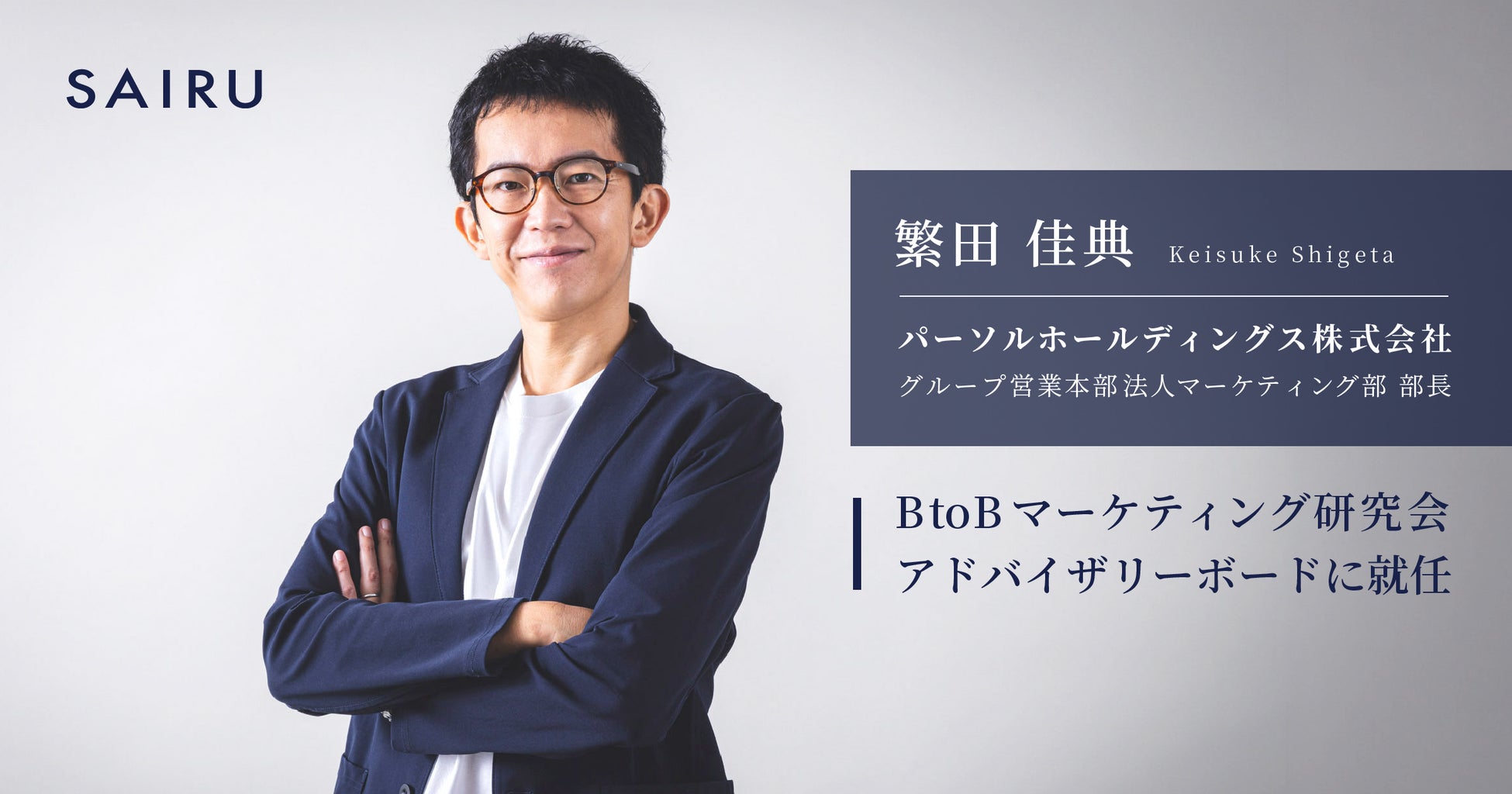 大手・中堅企業のBtoBマーケティング推進者が集まる会員制研究会「BtoBマーケティング研究会」(運営:株式会社才流)は、パーソルホールディングス株式会社 グループ営業本部法人マーケティング部 部長 繁田佳典氏が、当研究会のアドバイザリーボードメンバーに就任したことをお知らせします。繁田氏の知見を当研究会で共有いただくことで、会員企業のみなさまにさらなる価値を提供してまいります。