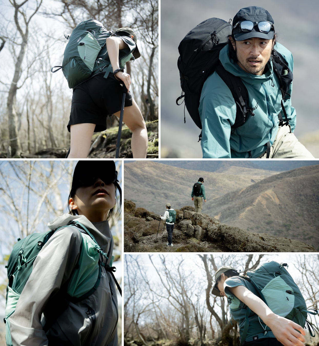 「GRX」シリーズは、まるで体の一部のようにフィットし、スピーディーな行動をサポートする新感覚のバックパックです。ベスト型の幅広ショルダーハーネスと高重心設計を採用することで、荷物を体幹に近い位置で安定させ、優れた追従性を実現しました。