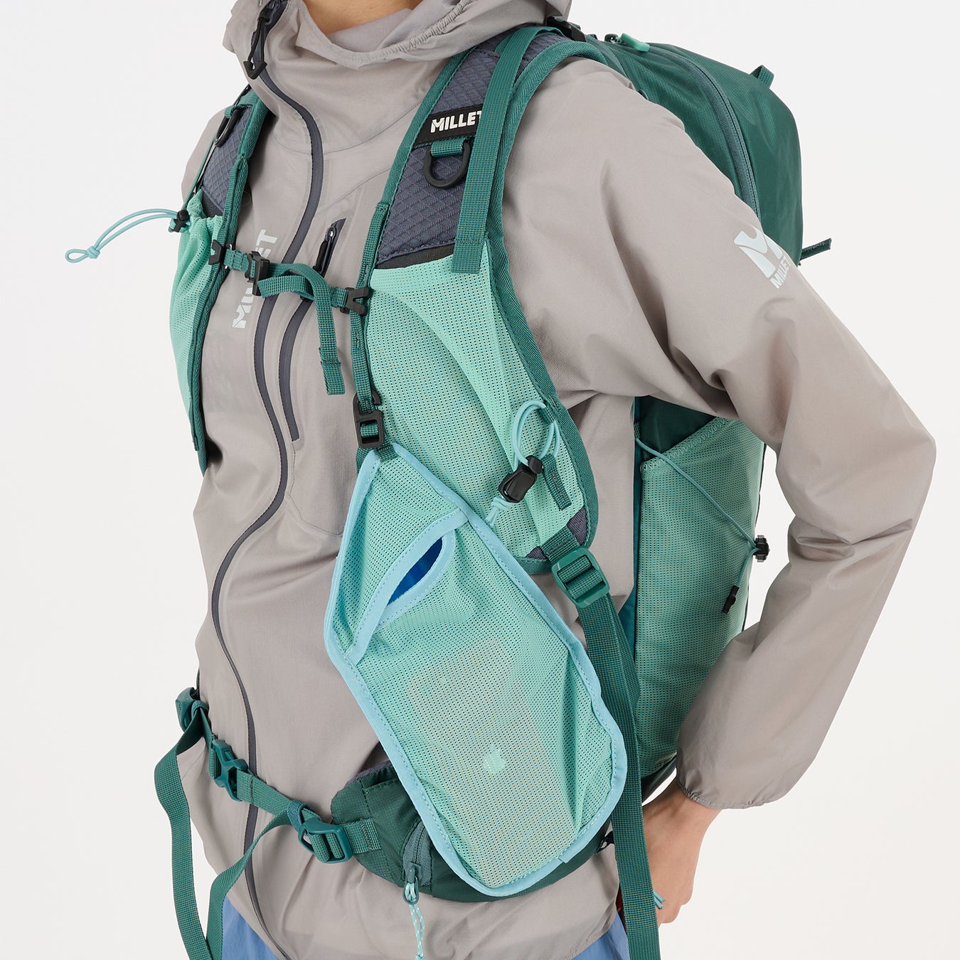 ショルダー&ウェストハーネス、フロント部分の収納力を高めることが、山行中のメインコンパートメントへのアクセス回数を減らし円滑な行動を可能にします。