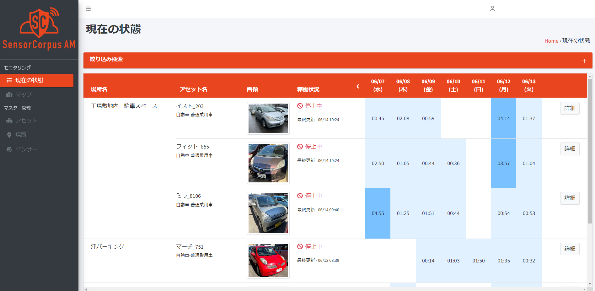 アセット統合プラットフォーム SensorCorpus AM「位置情報・稼働情報の見える化サービス」