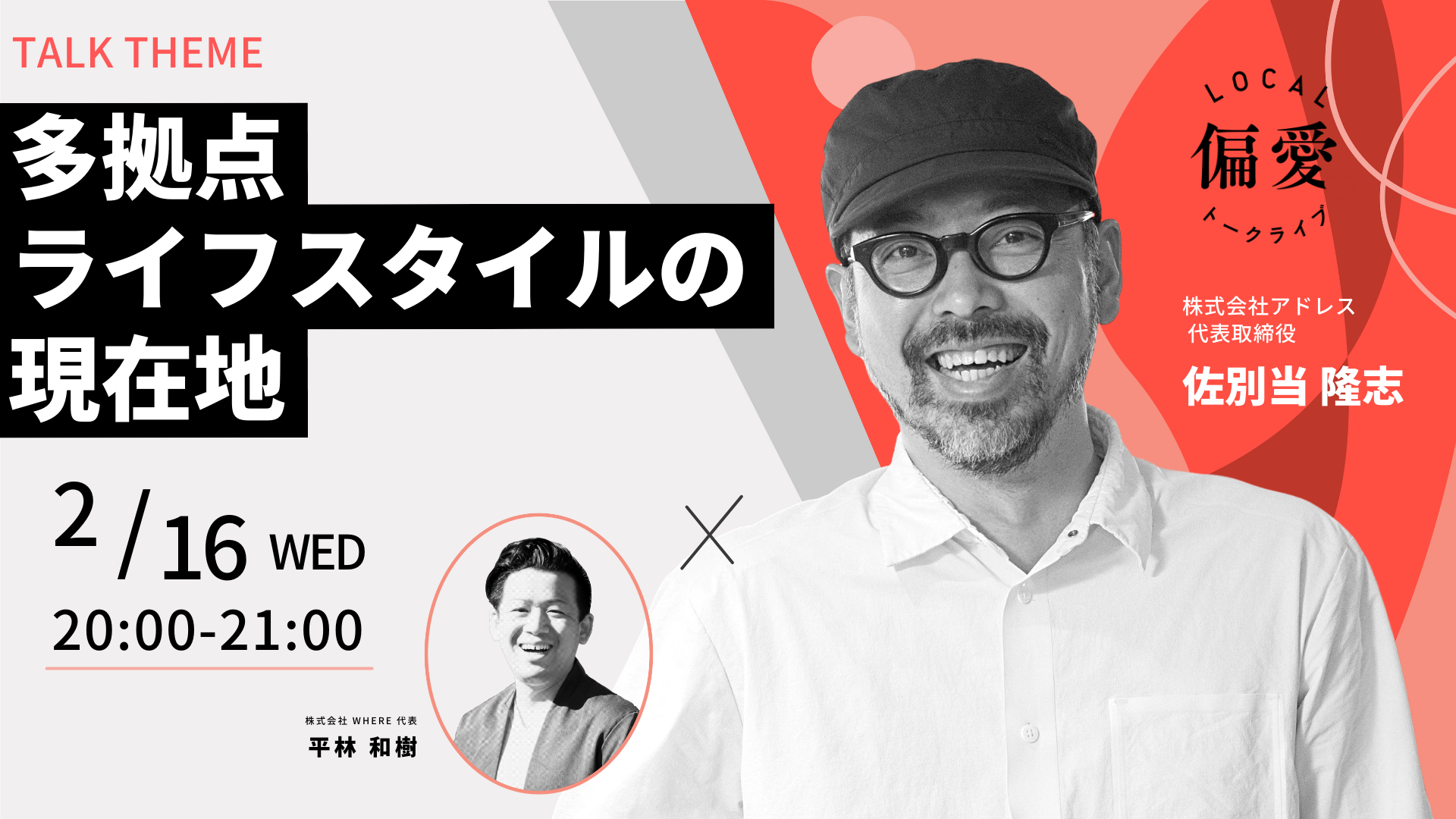 全国に220ヶ所以上ある家に住み放題の多拠点生活プラットフォーム「ADDress」を運営する株式会社アドレスの代表取締役社長・佐別当 隆志さんをお招きし、オフレコありのトークライブを開催。