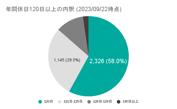 また、年間休日120日以上の中でも「120日」が最も多く約6割で、残りの4割の中には最大135日という求人も存在しました。