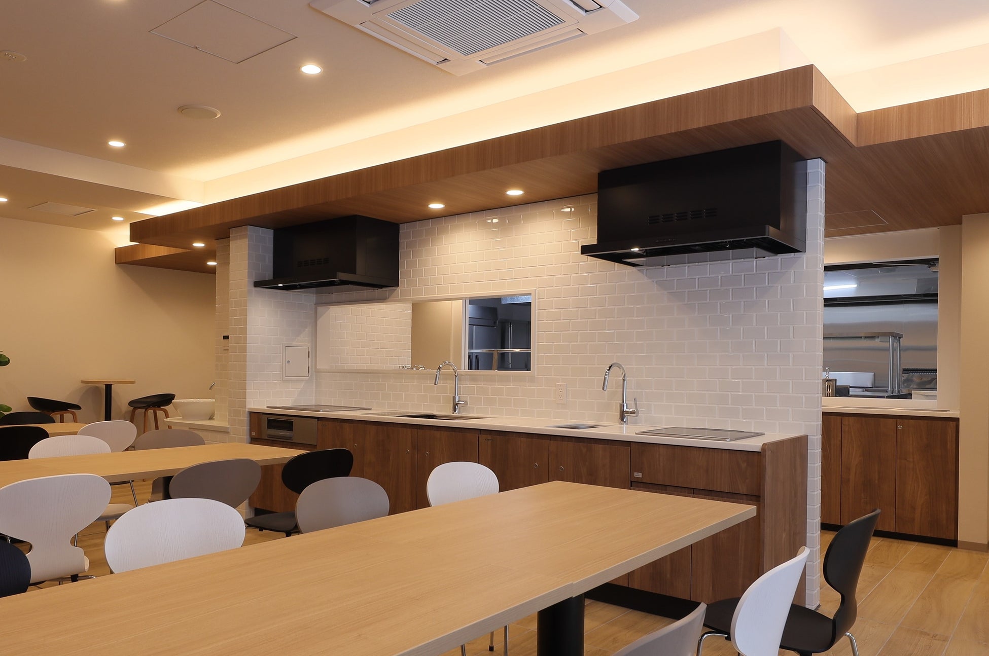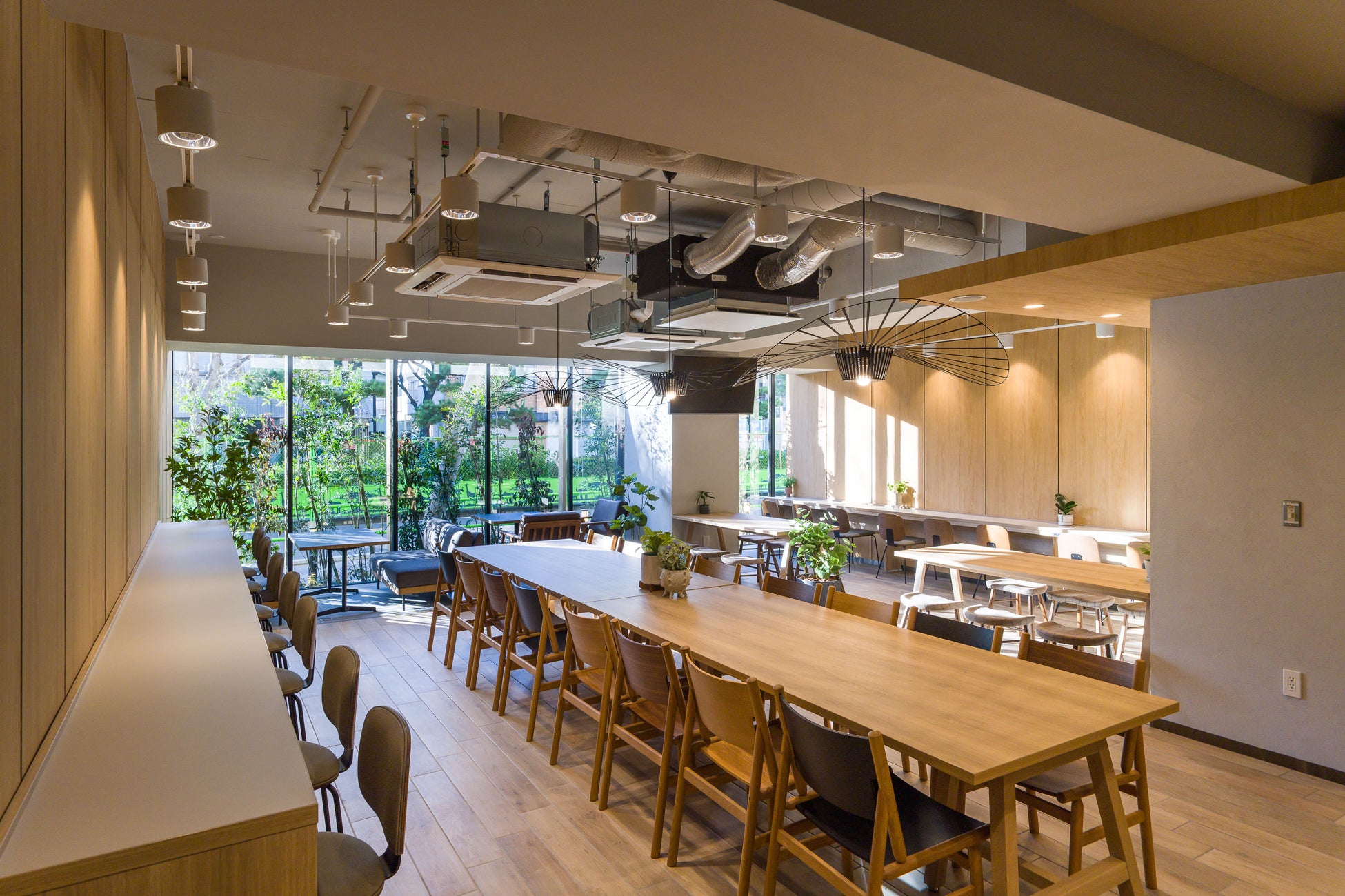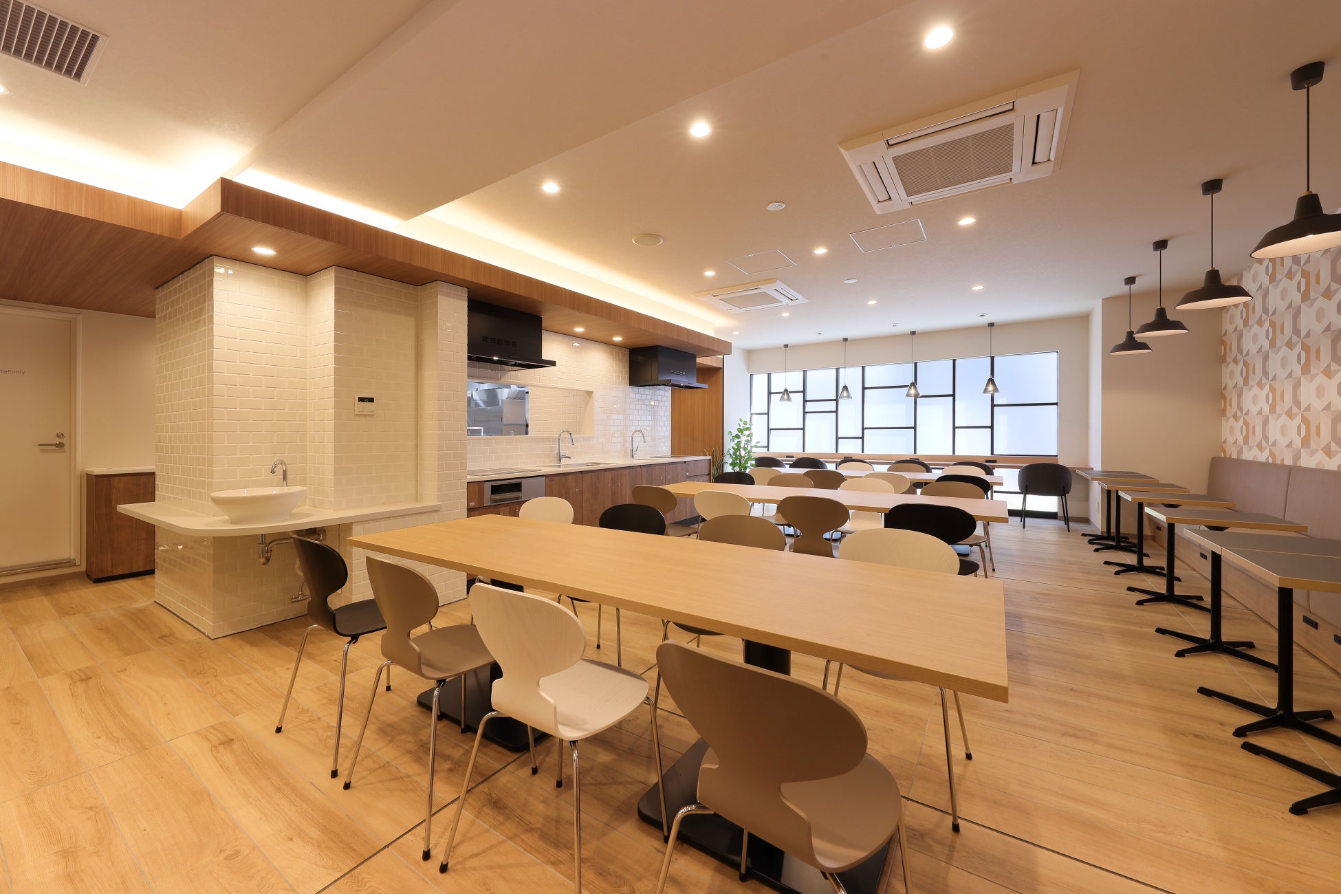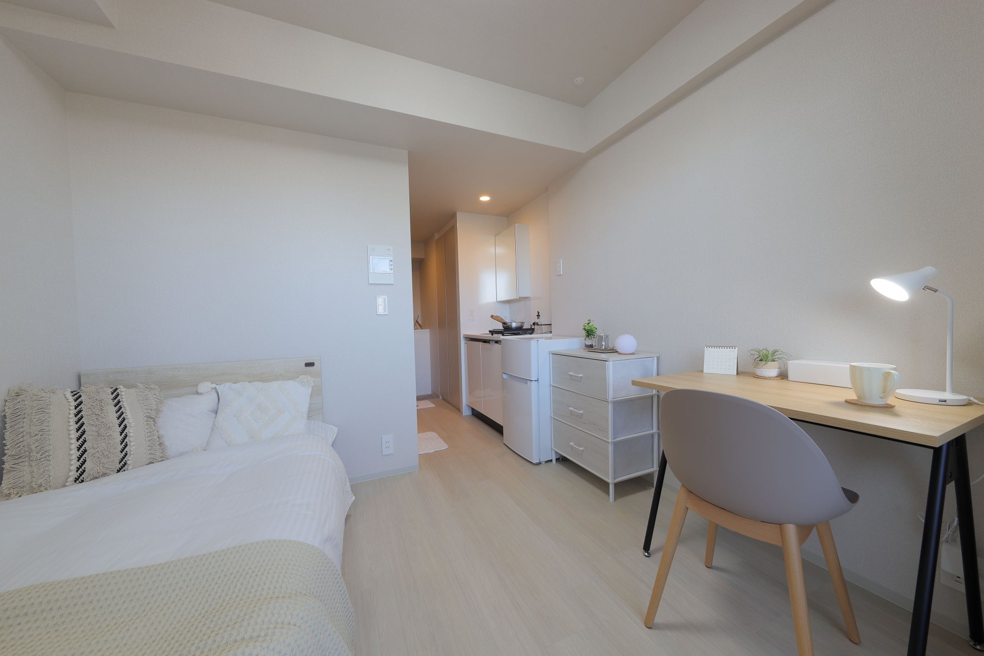 両物件とも、共用部は柔らかな木目調の空間で、採光を大きく取り、インテリアやグリーンを配置しています。寛いだ雰囲気のある居心地が良いカフェテリアは、食事以外の時間は入居者専用のフリー スペースとして開放され、他の入居者と交流をしたり自習をしたりと自由に利用することができます。専有部はバス・トイレ別で、浴室乾燥機付き。カフェテリアと部屋には、Wi-Fiが設置されており、オンライン授業も快適に行えます。全戸家具設置済みの為、初期費用を抑えることができます。