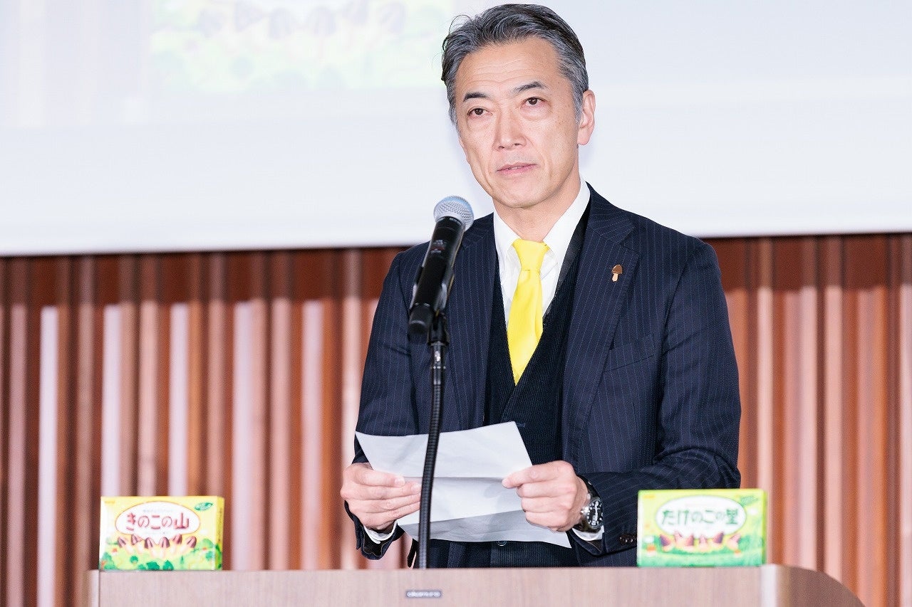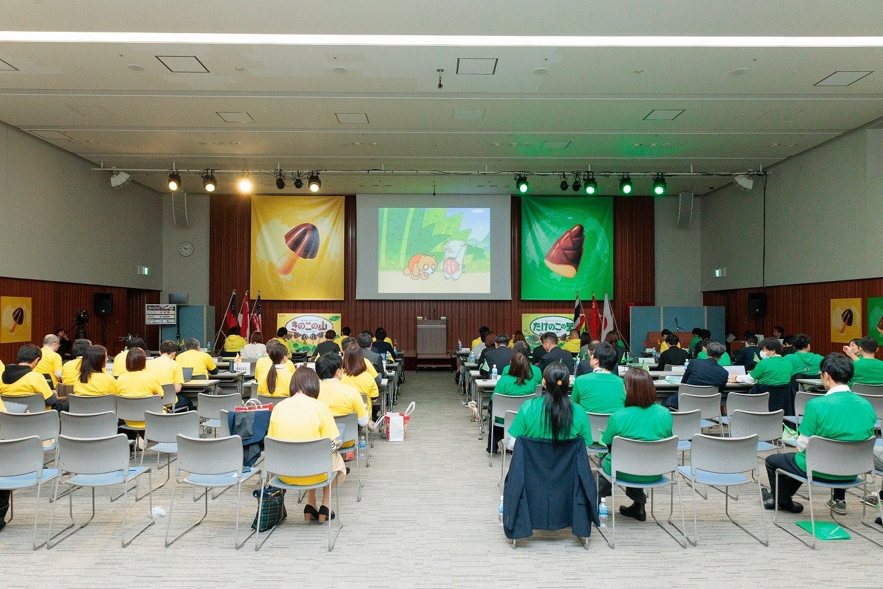最後に萩原本部長が登場し、『「きのこの山」「たけのこの里」は、『世界のみんなに、おいしく、おもしろく』を拡げます。そして、「きのこの山」が発売して2025年で50周年を迎えるにあたり、世界各国で「どっち派?」旋風を巻き起こす『グローバル総選挙』を今度実施します。』と発表。宣言に会場が大いに沸く中、今回が初開催となった「KINOTAKE GLOBAL SUMMIT」が幕を閉じました。