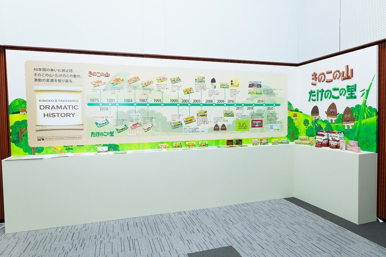 ・商品力イメージ調査の結果、子供時代にも体験する機会がある田園や海岸の食材と共生する雰囲気のほのぼのとした心温まるお菓子。しかも、当社の強みの小粒で多数個もの。手が汚れない。この商品群の開発の先鋒として「きのこチョコ」を「きのこの山」と命名。また、このシリーズの誕生で、世界で初めて「チョコスナック」と呼ばれるチョコレートの分野が誕生しました。