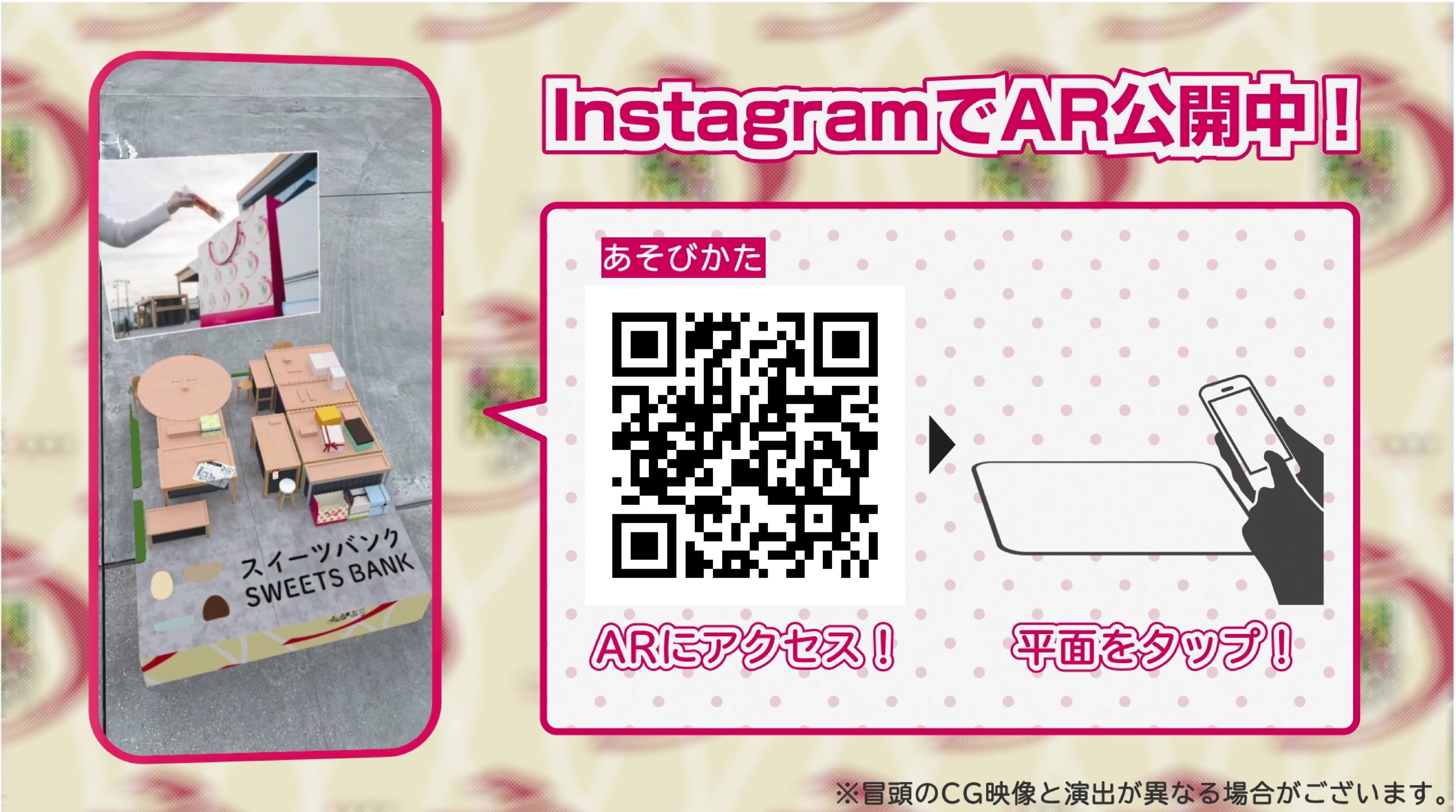 Instagramをインストールしているお客様であればQRコードからシームレスかつダイレクトにAR体験が立ち上がり、どこでもSWEETS BANKを体験することができます。