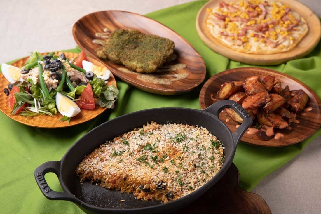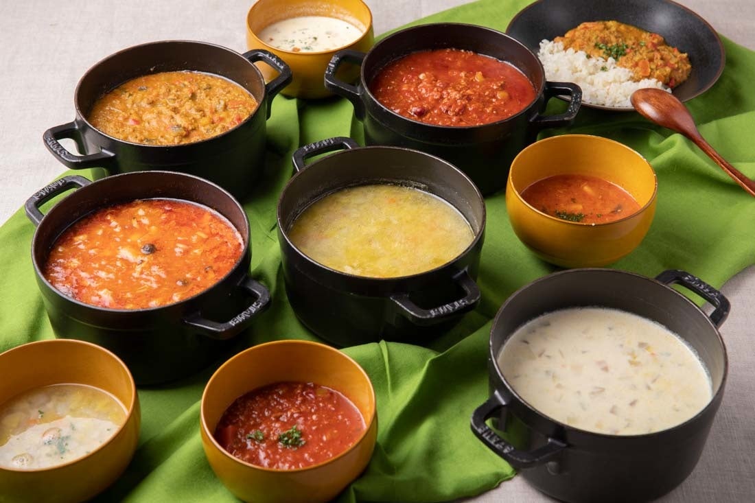 ギリシャの家庭料理「ムサカ」や、フランス風「鶏もも肉のフリット」、クレープ生地にベシャメルソースやコーン、ベーコンをのせて焼いたオランダ風のパンケーキ「パンネンクーケン」など、一皿で世界の料理が楽しめるワンプレートと、月替わりのスープをご用意します。スープは「ツナとあさりのチョッピ―ノ(サンフランシスコ)」や、「野菜入りチリコンカン(ニューメキシコ)、「ヤジノワ(ポーランド)」など、毎月5種類登場します。海外旅行気分でお楽しみください。
