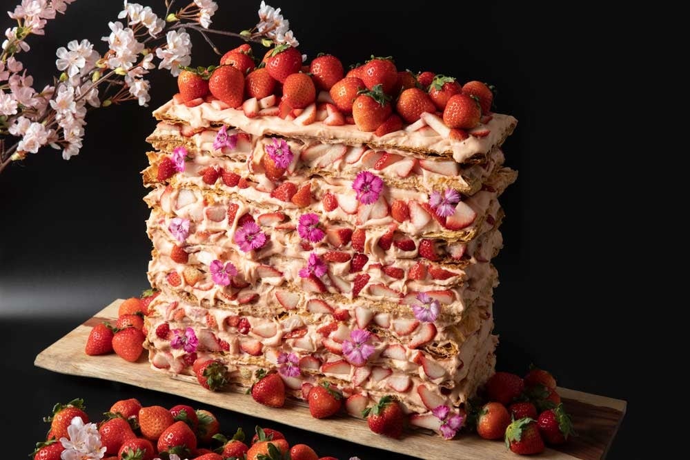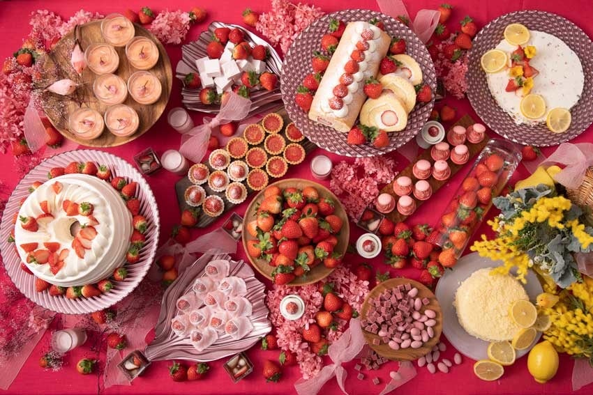 甘酸っぱいいちごスイーツビュッフェ★超巨大なミル・ミルフィーユはお花見気分