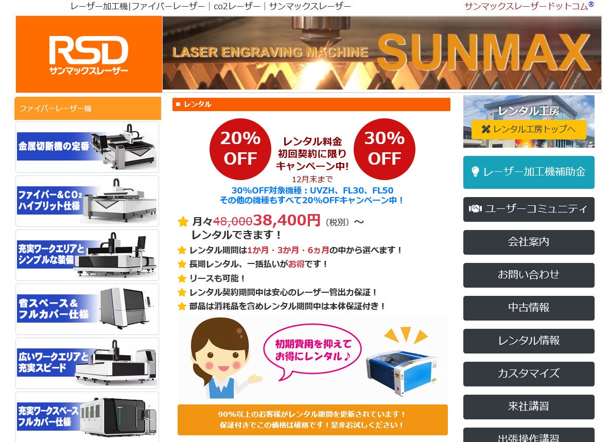 サンマックスレーザー加工機のレンタルに関する情報は下記URLをご参照ください。