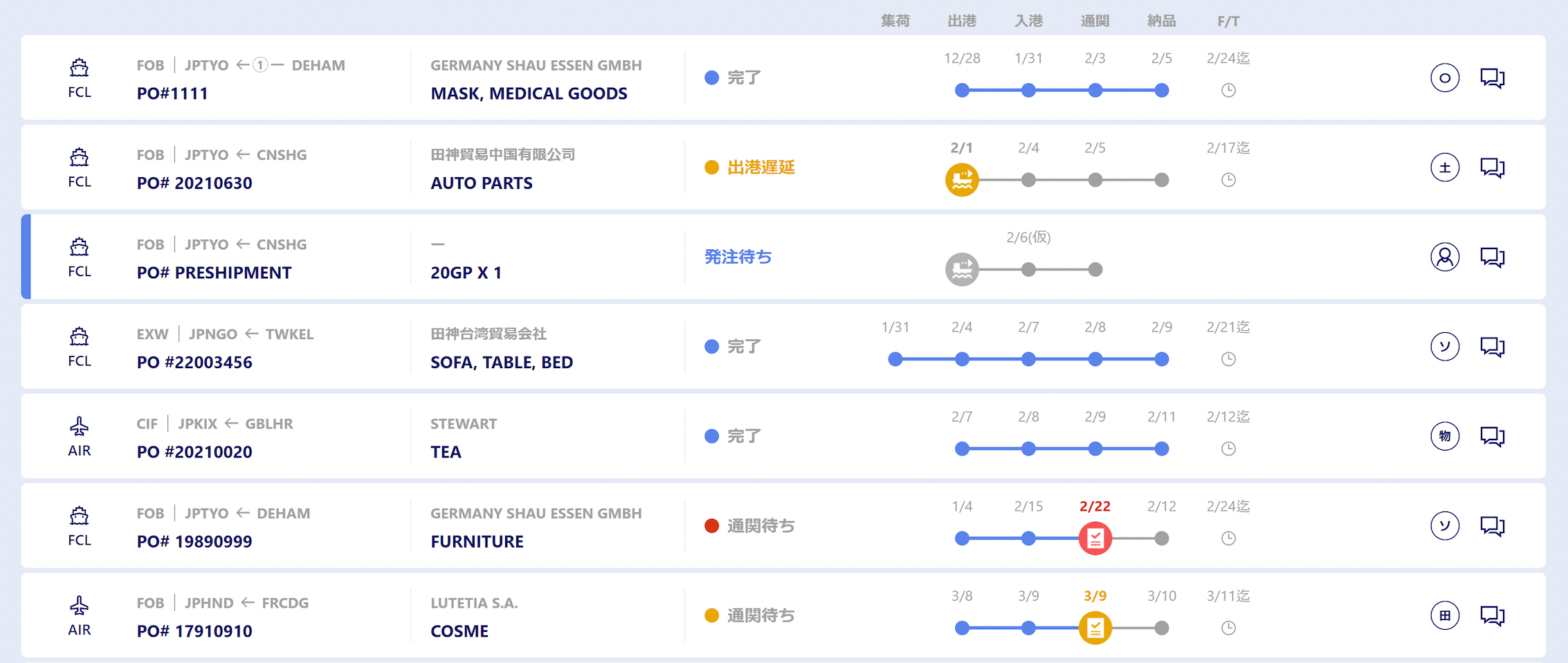 「Shippio」は、日本初のデジタルフォワーディングサービス(※1)です。貿易システムの提供と、国際物流フォワーディング業務の提供を通じて、アナログな業務が多く残る、国際物流領域のDXを推進いたします。貿易システム上では、本船動静の自動更新や見積もり・発注、貿易書類や請求書の一元管理が可能となり、デジタルを活用したビジネスプロセスの構築とオペレーションの提供を通じて、顧客企業の国際物流DXを実現します。