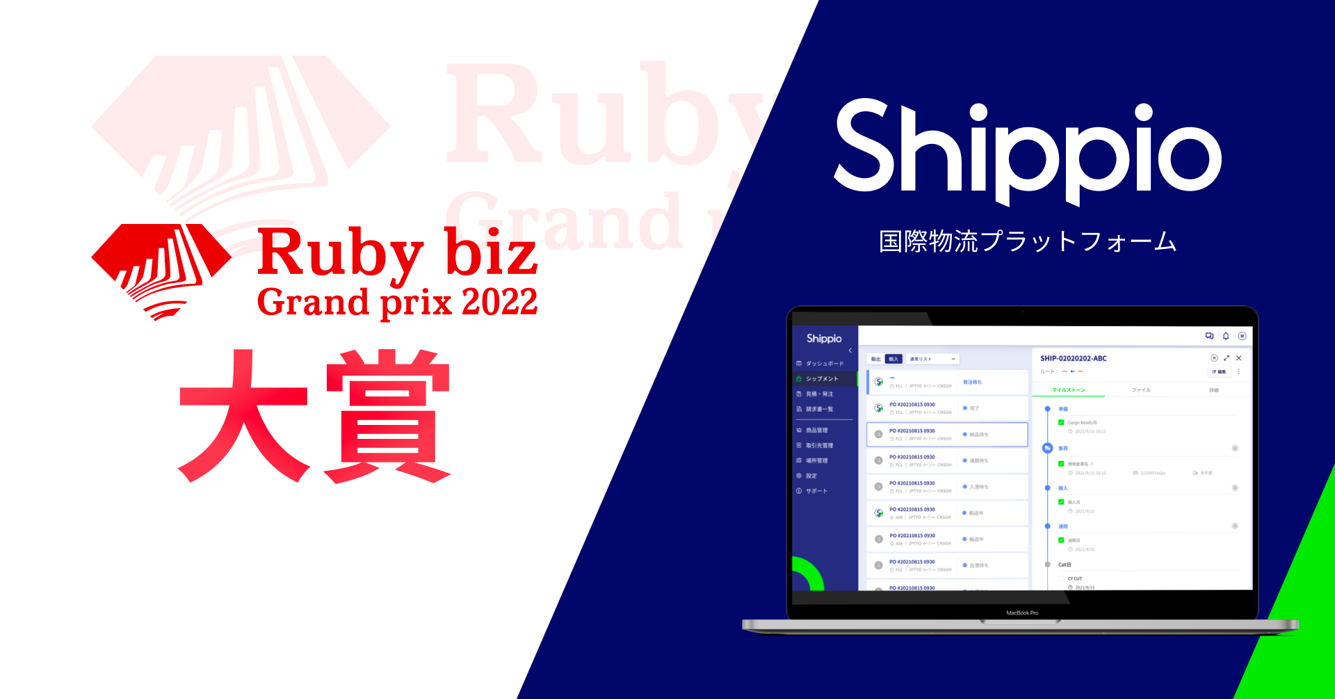 国際物流プラットフォーム「Shippio(シッピオ)」を提供する、株式会社Shippio(本社:東京都港区、代表取締役CEO:佐藤 孝徳、以下Shippio)は、プログラム言語「Ruby」を活用して、ビジネス領域で新たな価値を創造する事業を表彰する「Ruby biz Grand prix 2022」 において、大賞を受賞いたしました。