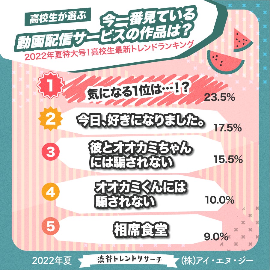 2022年夏特大号!高校生最新トレンドランキング 流行語や好きなアーティスト・芸能人を含む15項目を発表