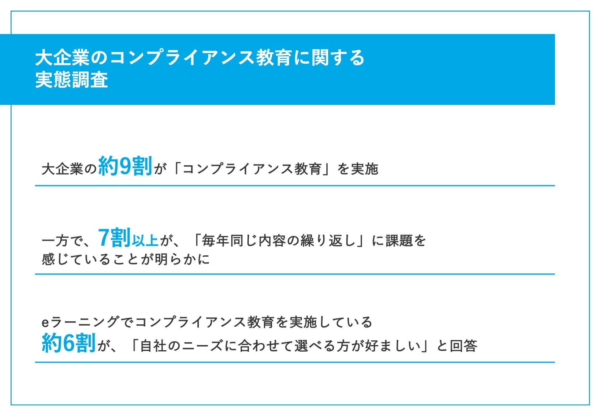 01|大企業の約9割が「コンプライアンス教育」を実施