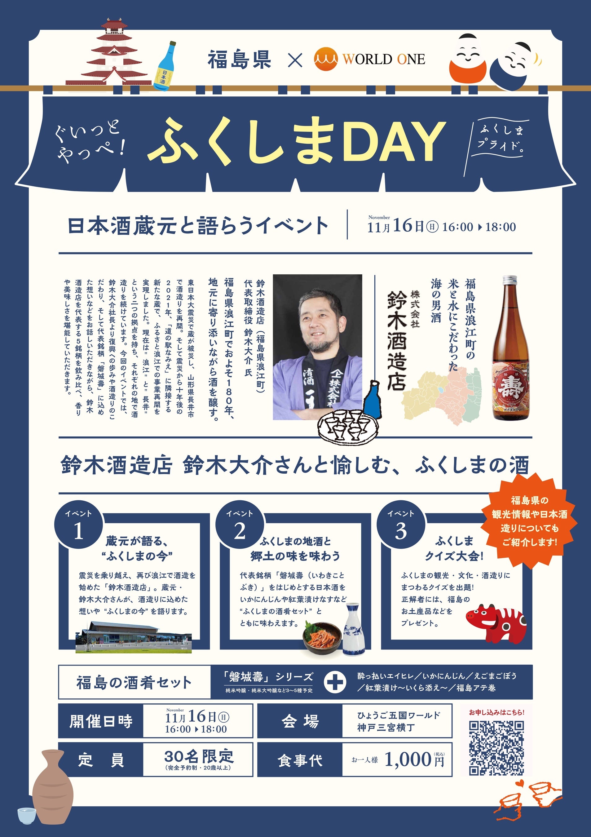 【福島県×ワールド・ワン】福島の日本酒と郷土の味を愉しむ「ぐいっとやっぺ!酒処ふくしまフェア」を神戸・大阪で開催