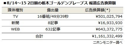 メディアの調査・分析を行うニホンモニター株式会社(本社:東京都港区浜松町、代表取締役社長:韮澤美樹)は、TV・新聞・WEBニュースの報道結果を調査し、ルートインBCリーグ・栃木ゴールデンブレーブスに入団したお笑い芸人コンビ「ティモンディ」の高岸宏行選手が初登板・初先発した話題が、登板日から2日間のメディア露出を広告費に換算すると11億6133万円に上ることを算出した。