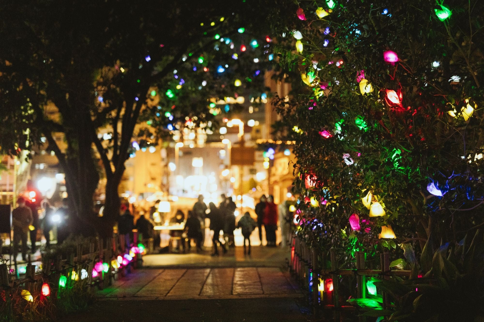 アーティストの髙橋匡太さんの作品で、道後公園が色とりどりに光る実で彩られます。
