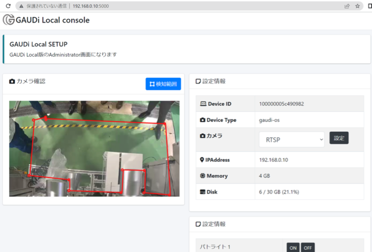 →管理画面からカメラ映像を取得し現場に最適なAI学習、危険エリア設定をお客様自身でできます。