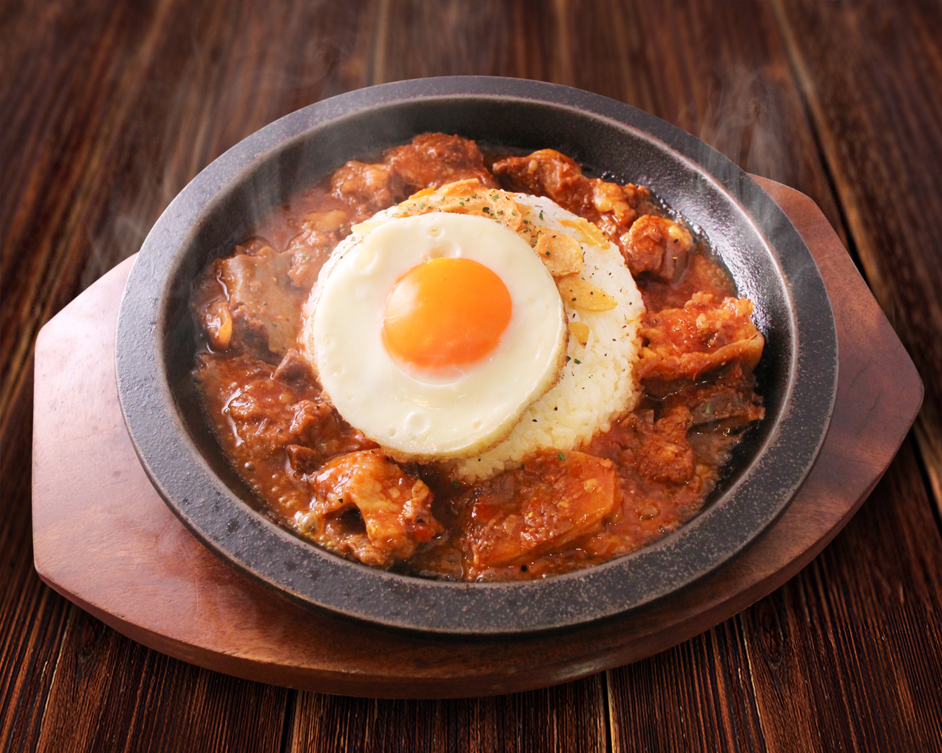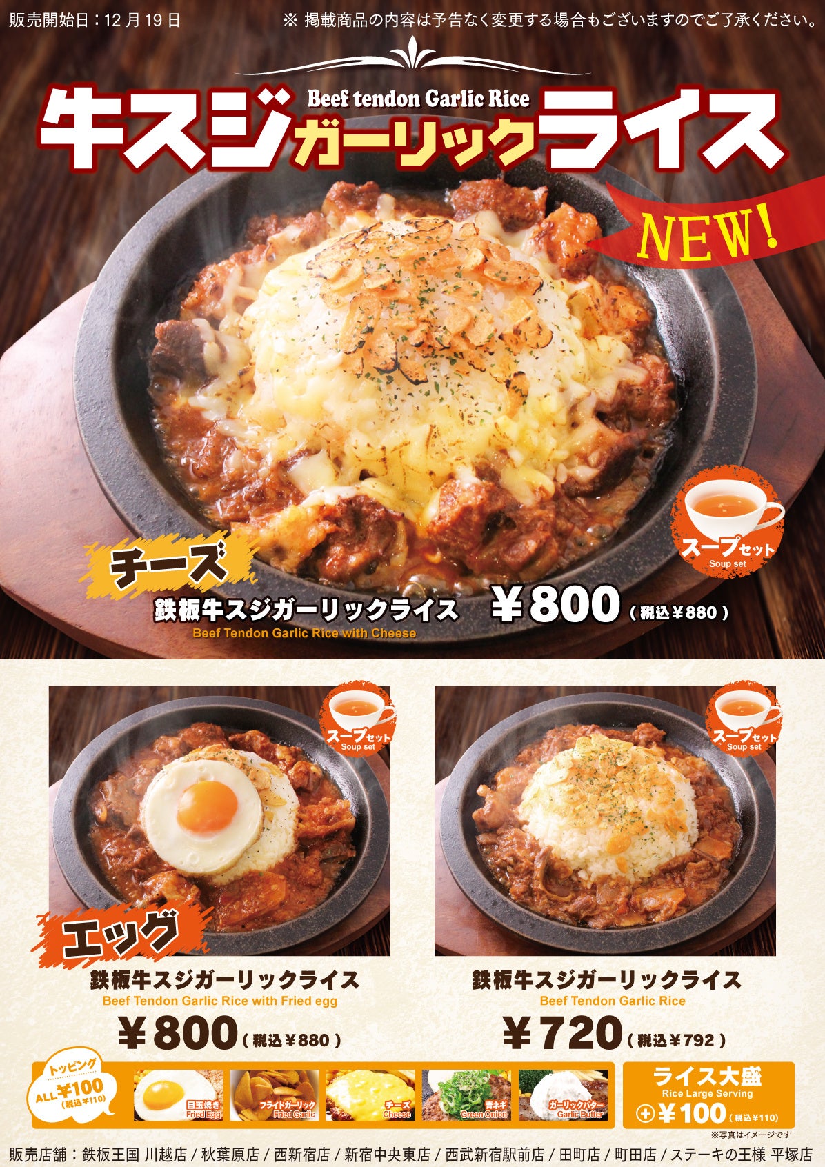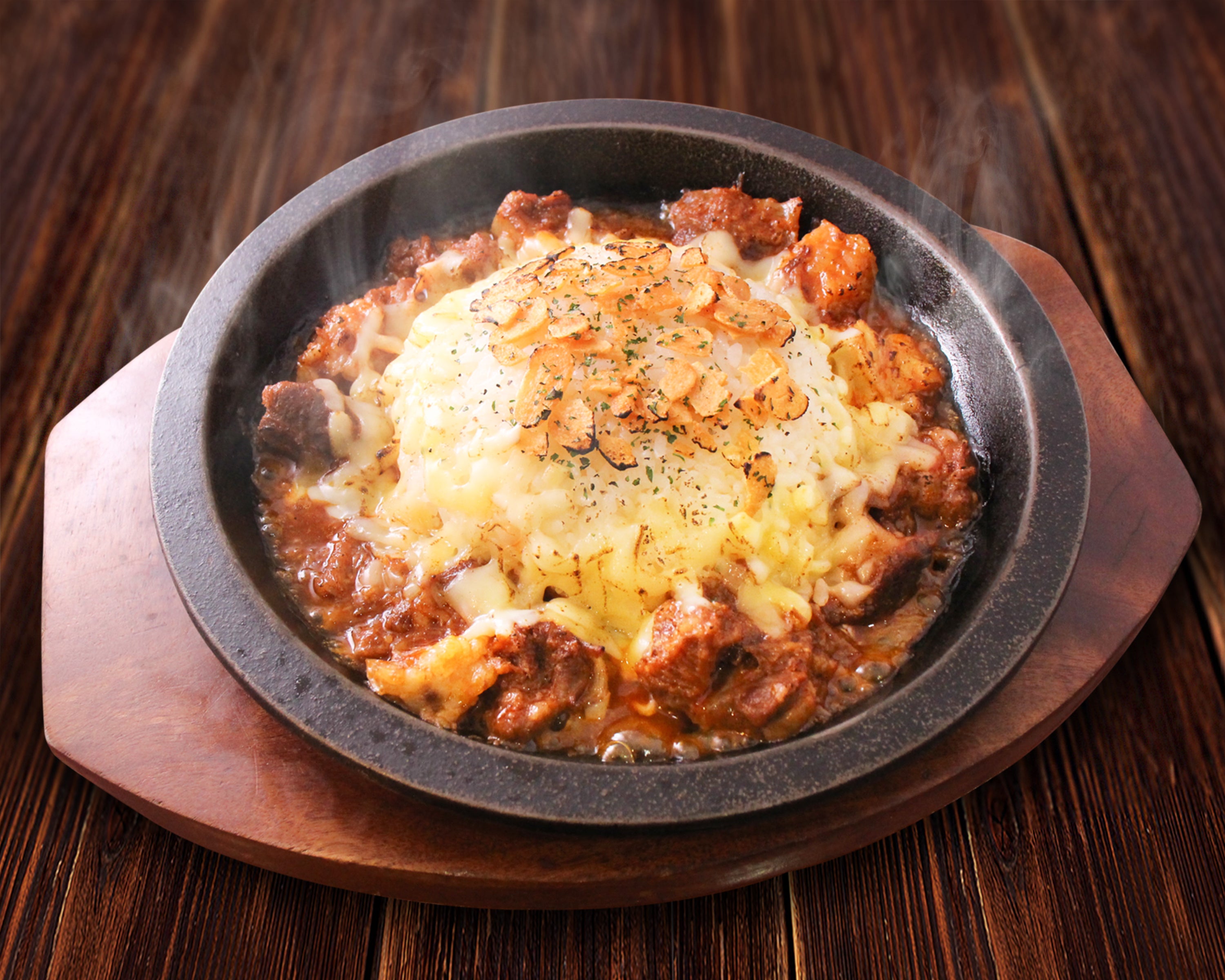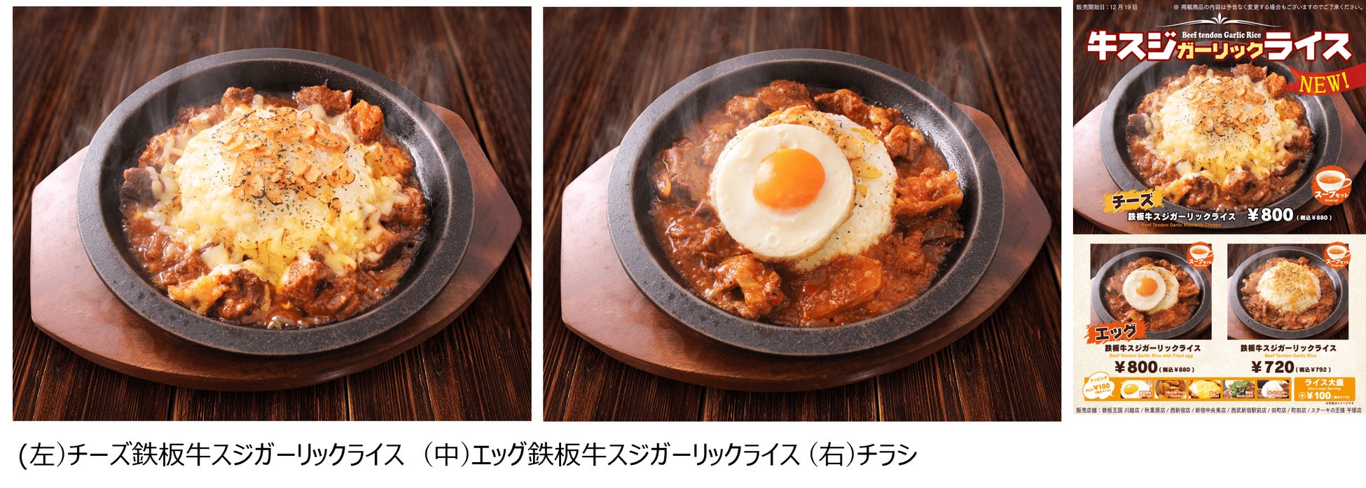 プルプルに煮込んだ牛スジとパンチの効いたガーリックライスが食欲をそそる『鉄板牛スジガーリックライス』 新発売‼