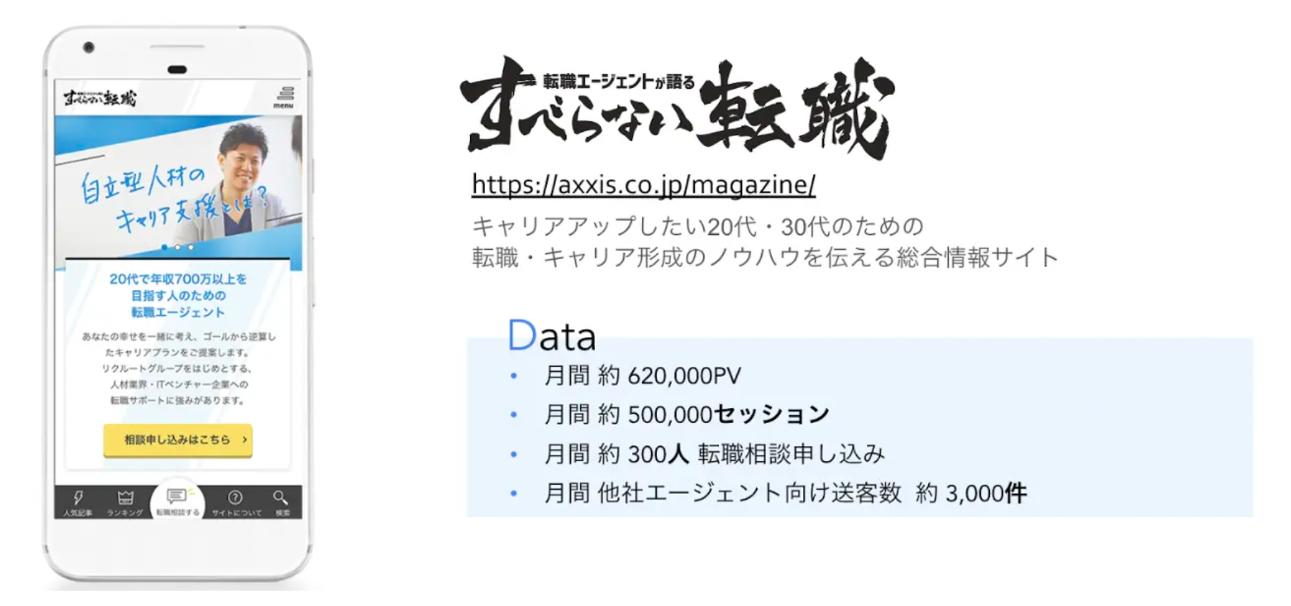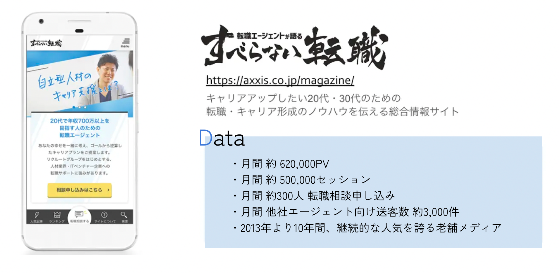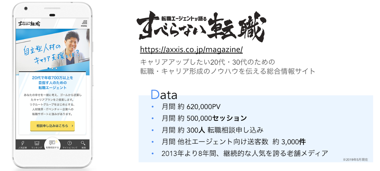 「すべらない転職」は、2012年のアクシス設立と同時に、代表末永個人がブログとして書き始めたことを機に立ち上げたメディアです。