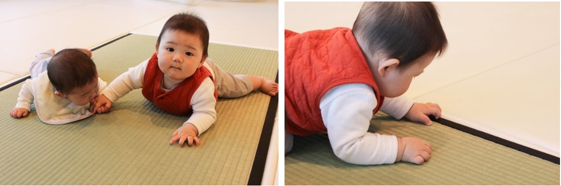 「1-3歳は五感の発達段階を親が感じやすい時期。畳の感触、い草の香り、振動スピーカから発せられる音と振動によって、子どもたちの触覚・聴覚・嗅覚を同時に刺激する効果が期待できます。」