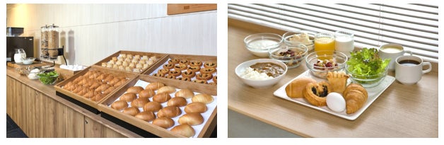 朝食は、毎朝ホテルスタッフが焼き上げる焼きたてパンを中心に、サラダやモーニングカレーなどをバイキング形式でご用意いたします。