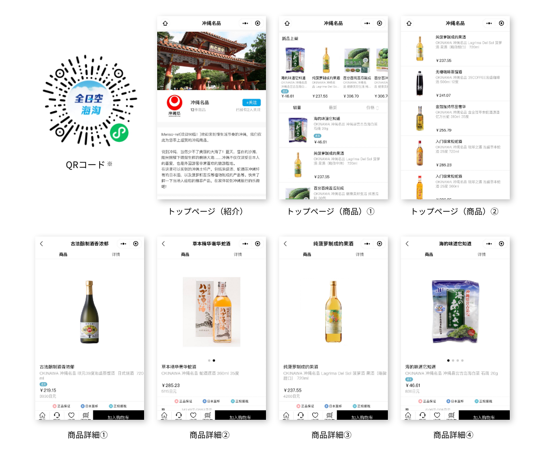 株式会社ACD(代表取締役:古居 弘道、本社:東京都港区、以下ACD)とANAあきんど株式会社(代表取締役社長:高橋 誠一、本社:東京都中央区、以下ANAあきんど)は連携し、沖縄県のご協力のもと、ACDが運営する中国向け越境ECサイト「全日空海淘」内に沖縄県産品を集めたページを開設し、商品の販売を2021年12月より開始いたしました。本ページへは2021年9月に開設したWeChat(ウィーチャット)内の沖縄県公式ミニプログラムから簡単に遷移することができます。