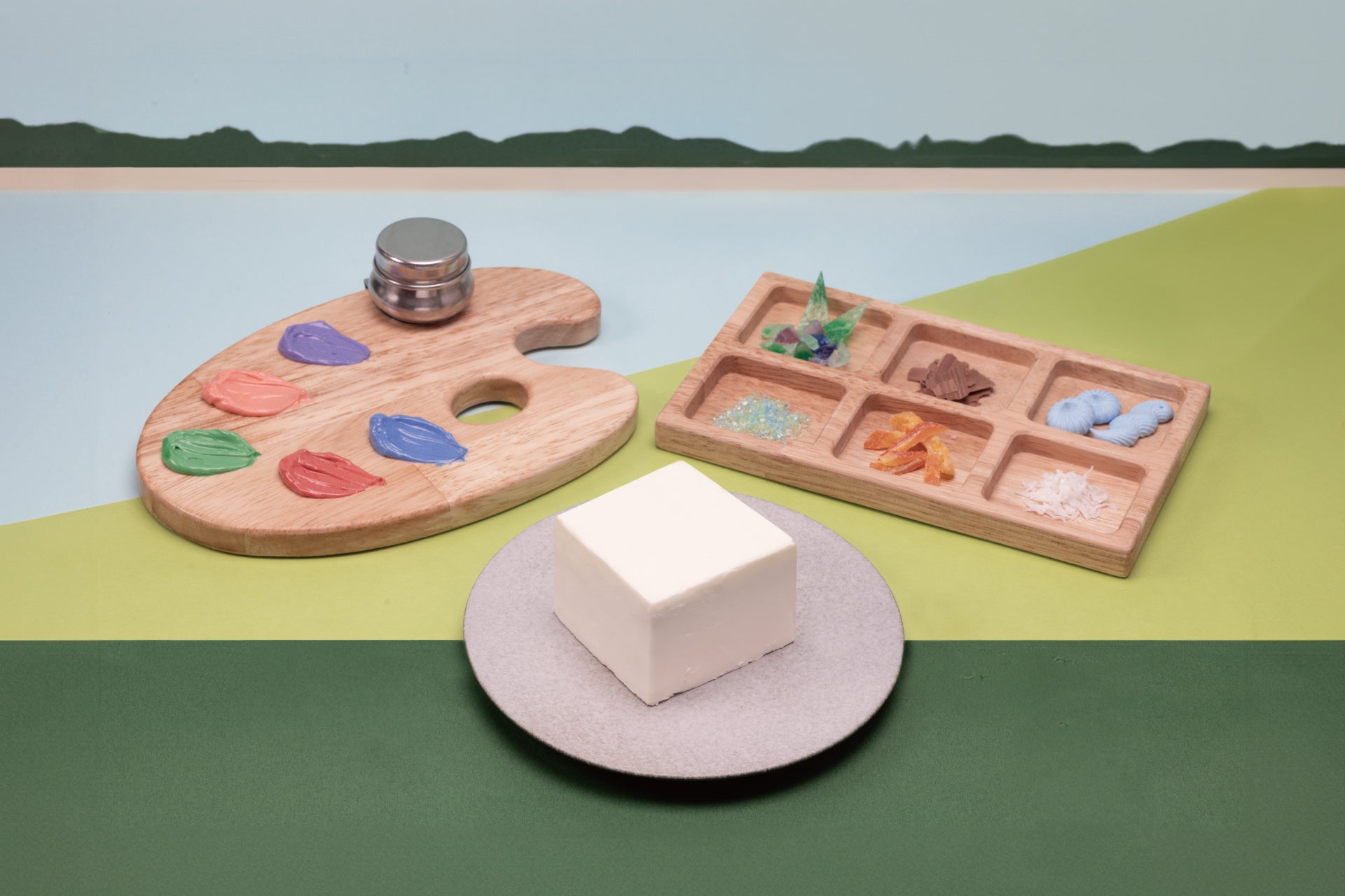 それぞれ異なるフレーバーの5色のバタークリームや、木箱に入ったトッピングパーツを使ってオリジナルな「作品」づくりをご体験ください。