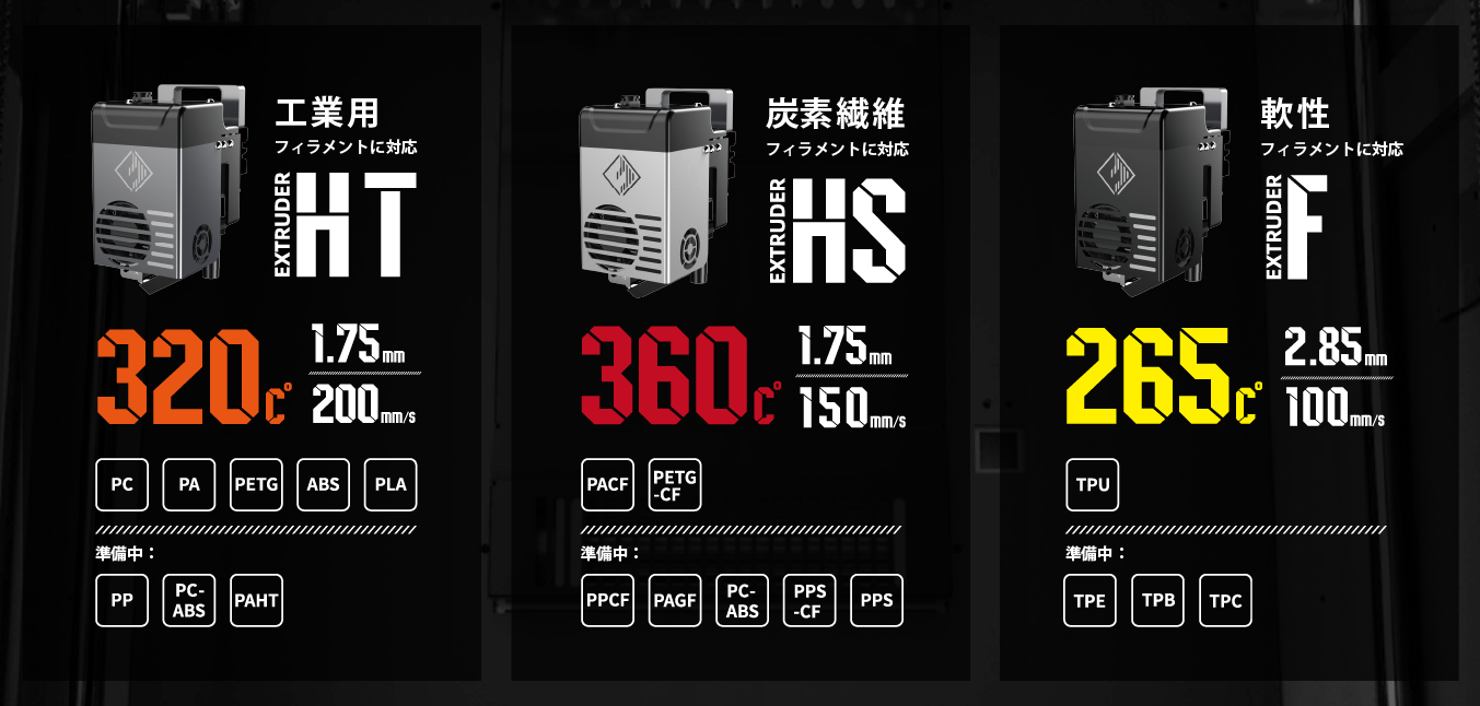 ※購入の際は、「Extruder-HT」「Extruder-HS」どちらかのエクストルーダーを選択してください。