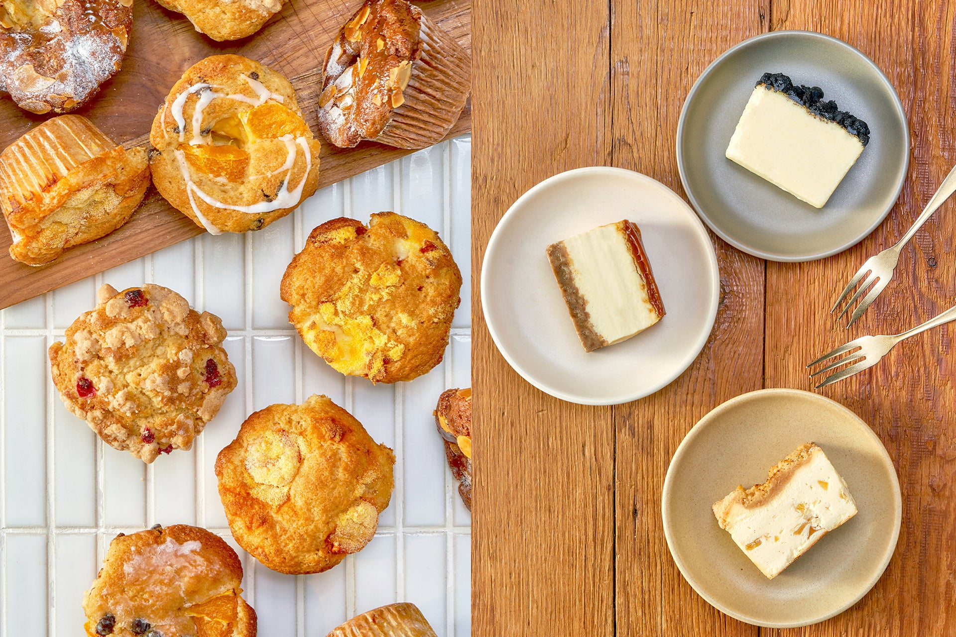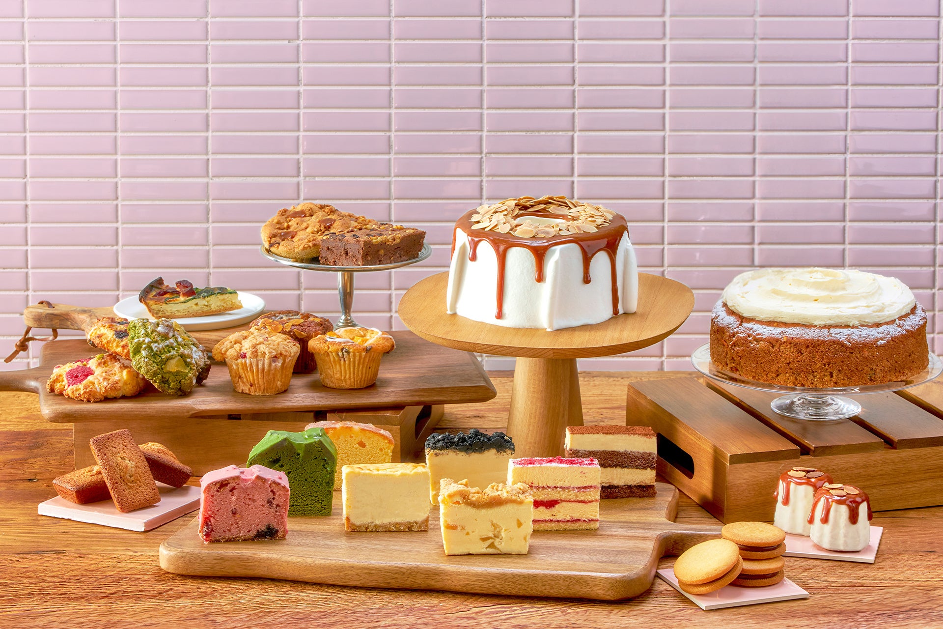 そのほか、チーズケーキやマフィン、クランブルケーキ、キャロットケーキなど、仕事の休憩中や1日を締めくくるおうちでのティータイムに楽しめる豊富な焼き菓子をラインナップ。ホッとひと息つきたい気分の時に、気軽に立ち寄りお買い求めいただけます。毎日のさりげないご褒美として是非、心満たされるスイーツをお楽しみください。