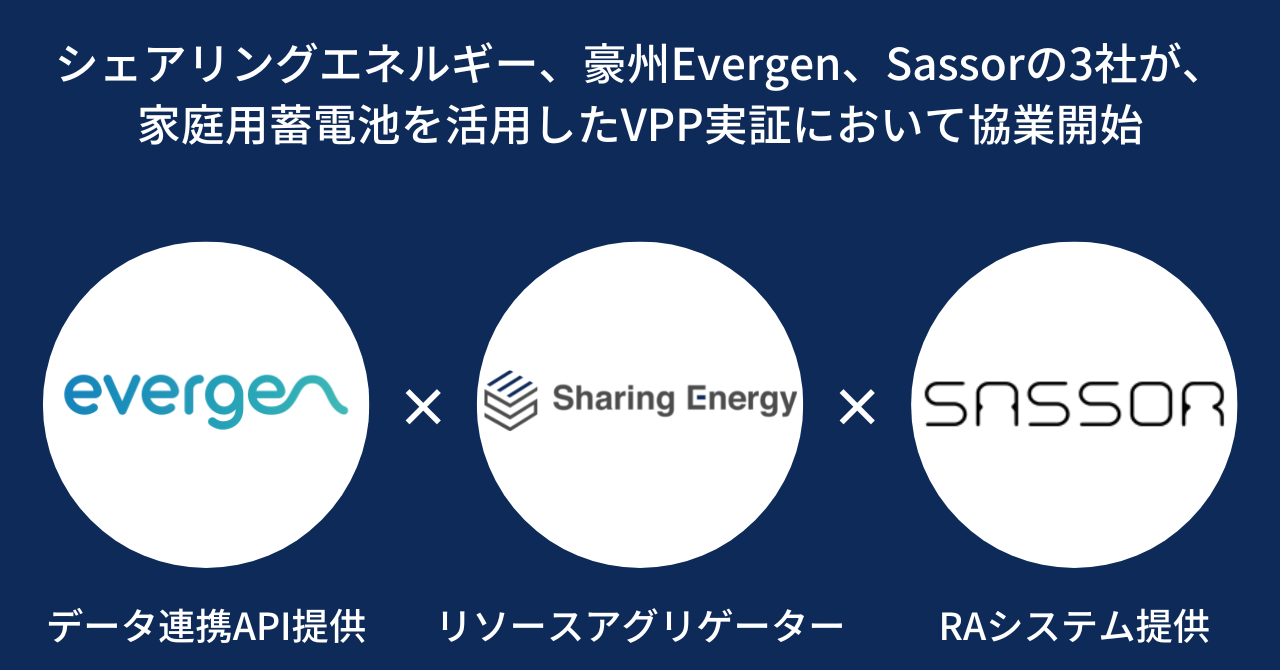 シェアリングエネルギー、豪州EvergenおよびSassorと業務提携し、分散電源のエネルギーマネジメントの実証を開始