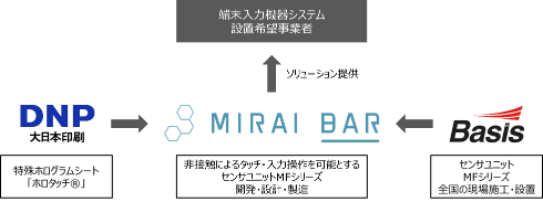 ベイシスはDNP、MIRAI BAR社とともに、非接触によるタッチ・入力操作を可能とするソリューションの提供・運用保守に関する、さまざまなお客様の要望やニーズに応えるとともに、コロナ禍によって注目される、衛生面等への配慮や安心への人々の意識の高まりに対して貢献いたします。