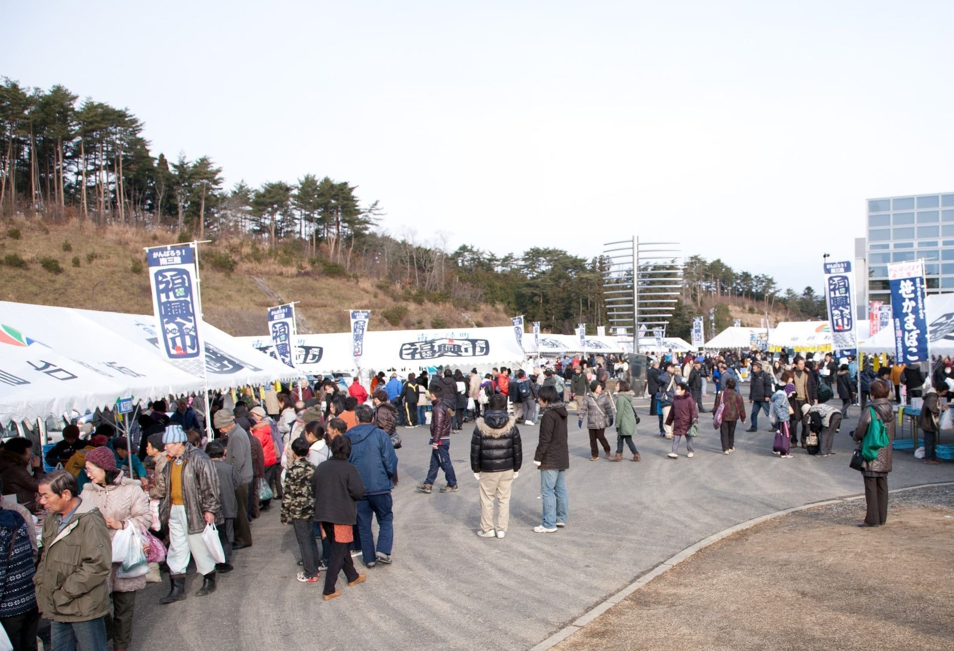 ~志津川仮設魚市場に町内の事業者が集まり、記念すべき100回目の福興市を感謝を込めて開催~