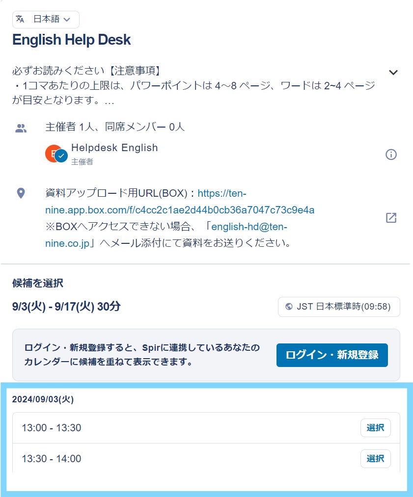 『Englishヘルプデスク』は資料のボリュームに合わせて時間枠で英文校正を実施します。