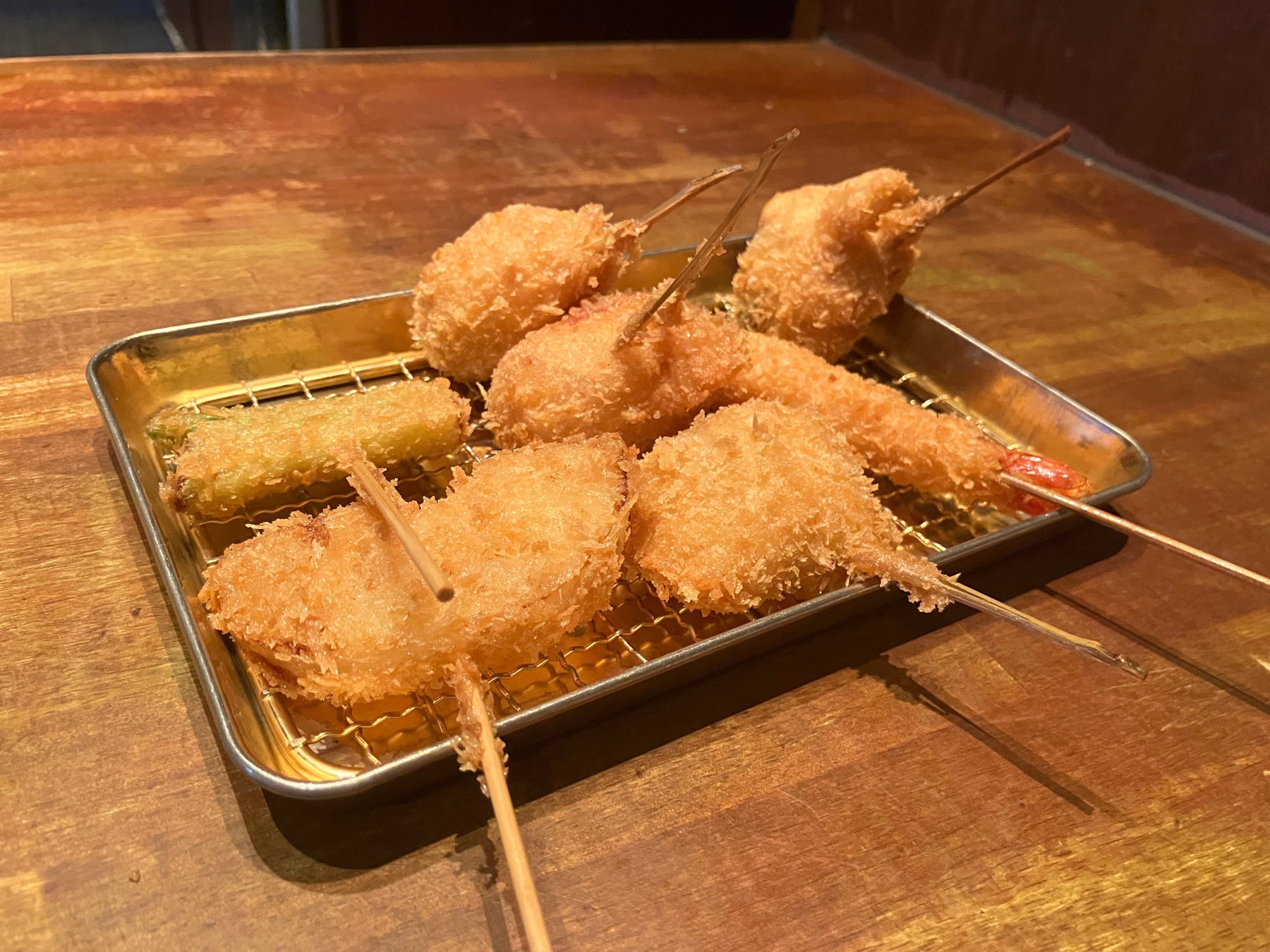 串カツ屋七星の串カツは、女性でも10本以上頼まれる方が多いそうです。その理由は、【100%ラード油】を使用してサクッと丁寧に揚げているからだそうで、ここに作本様のこだわりが詰まっています。