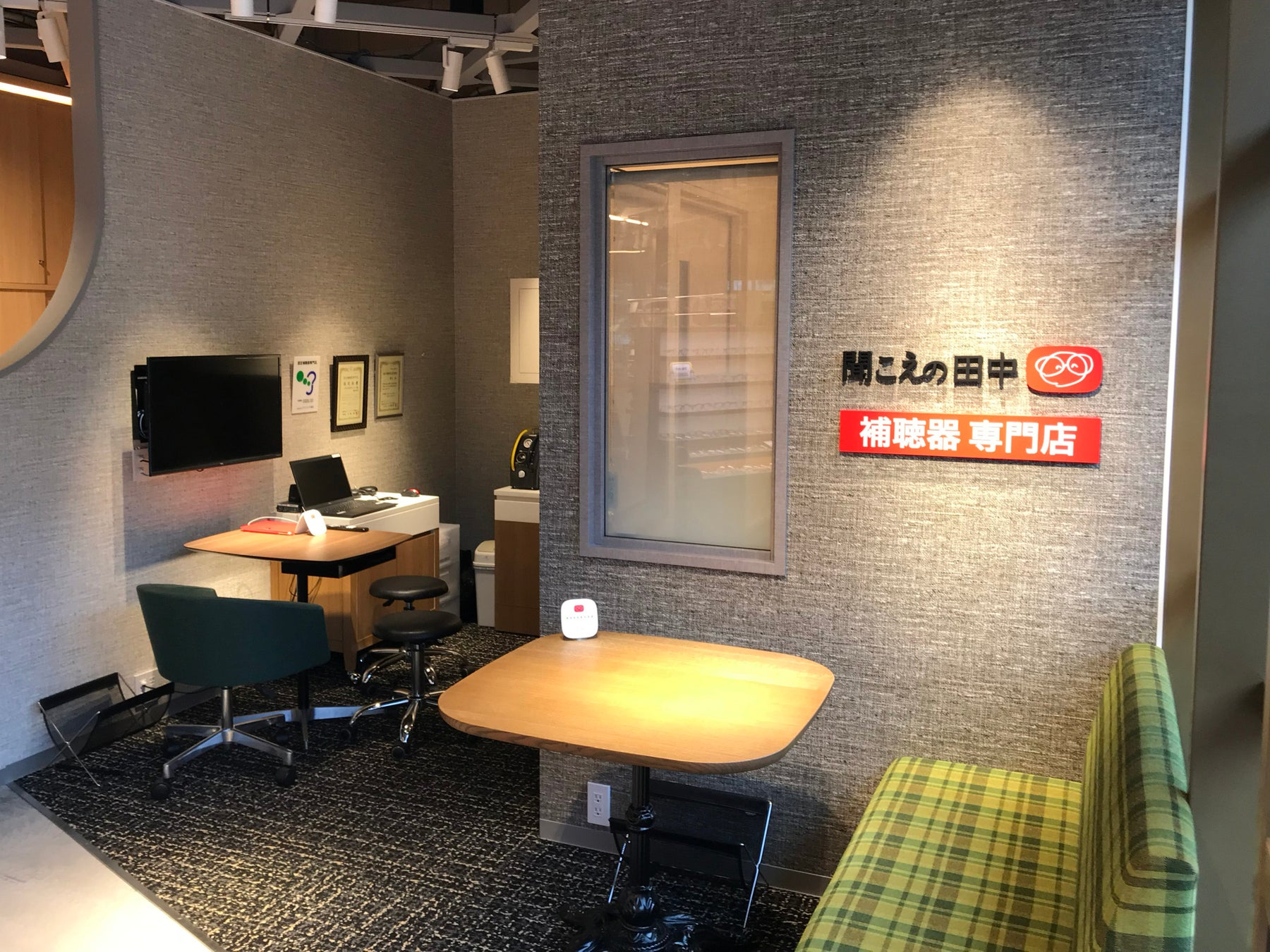 聞こえ(補聴器)コーナーは、「はじめての相談は不安」という方にも安心してお越しいただけるよう、リビングルームのようなインテリアにしました。カウンセリングでは、ご本人だけではなく、ご家族など周囲の方にも、今の聞こえの状態やお困りごと、聞こえることへのご希望についてお話をうかがいます。