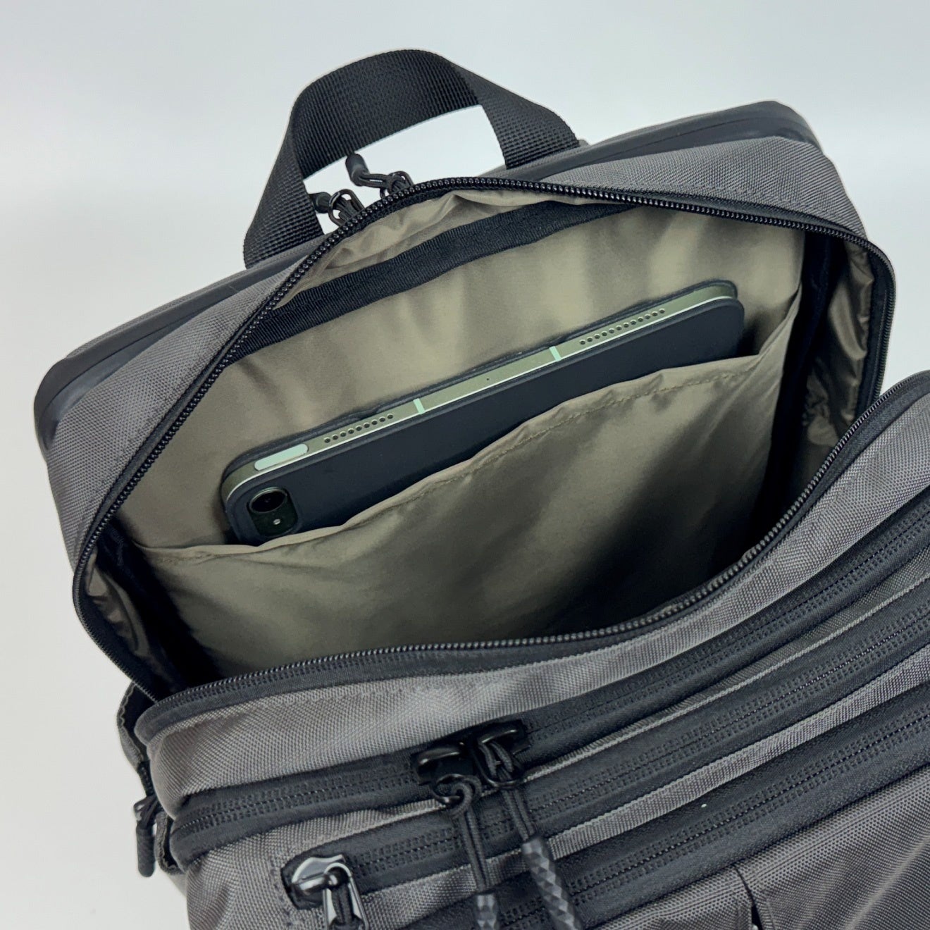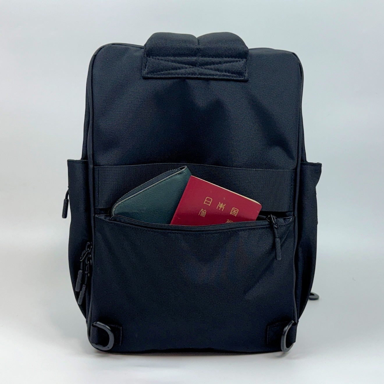 バッグの前から2層目には、バッグ上部と両サイドに