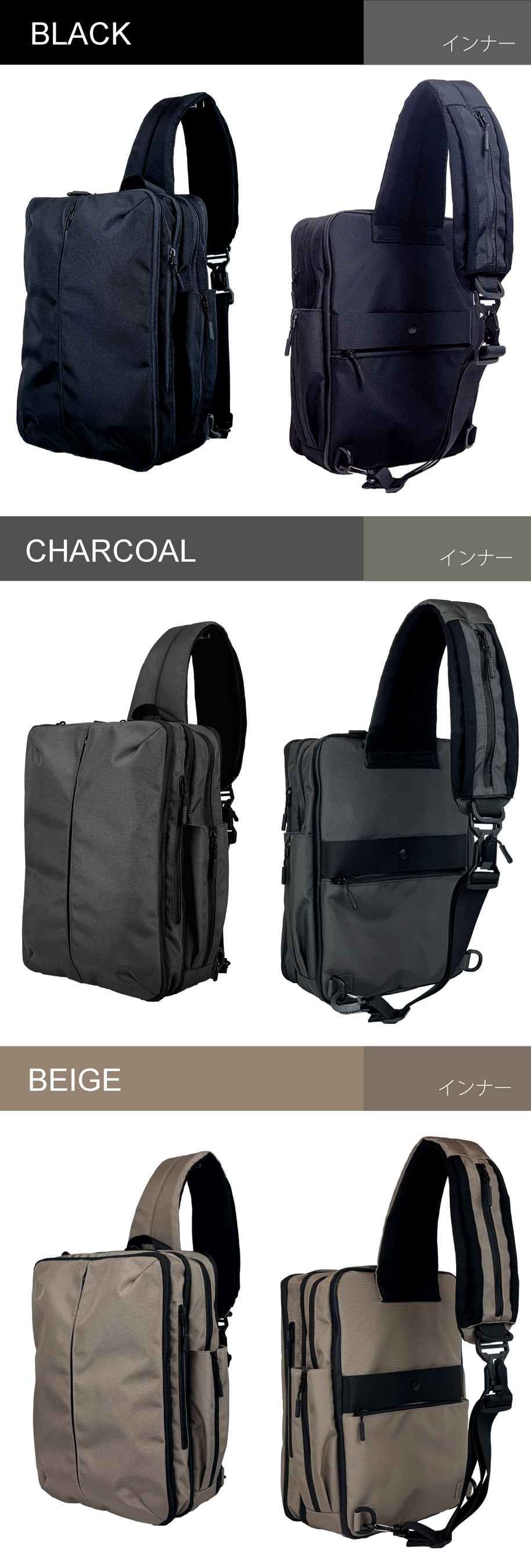 カラー:ブラック、チャコール、ベージュ
