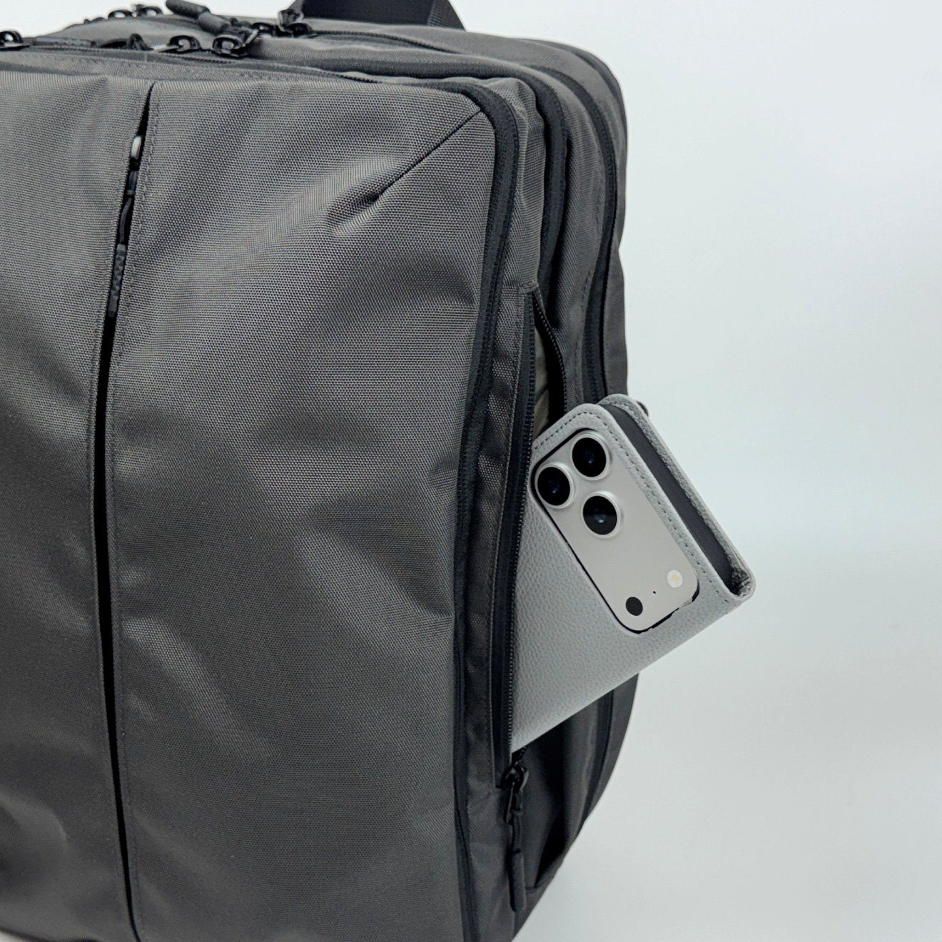 スマートフォンやイヤホンなど、頻繁に出し入れするアイテムを収納できるため、バッグを前に回さなくてもスムーズに取り出すことができます。