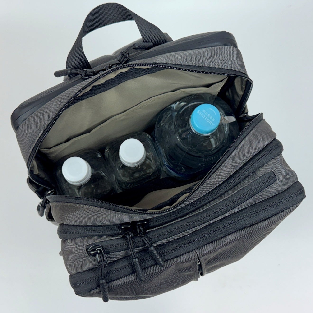ボトルを入れるときだけファスナーを開いて使用できる設計にしました。