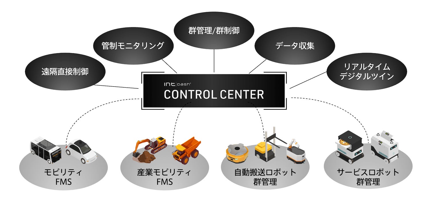 intdash CONTROL CENTERは複数のロボットやモビリティの運用においてさまざまな機体をサーバー/クラウドベースへ接続し、双方向なリアルタイムデータストリーミングを可能にすることで以下の機能を迅速提供するソリューションフレームワークです。自動車、建設機械や重機、農機などの産業車両における制御データや各種センサデータをはじめ、ロボット開発におけるデファクト化が進むROS (Robot Operating System)のデータストリーミングに対応し、複数のロボットやROSのネットワーク間を、広域なインターネットを跨いだリアルタイム性の高いデータパイプラインで繋ぐことが可能です。intdash CONTROL CENTERによりモビリティやロボットの運用に必要とされる以下の機能を迅速に提供することができます。