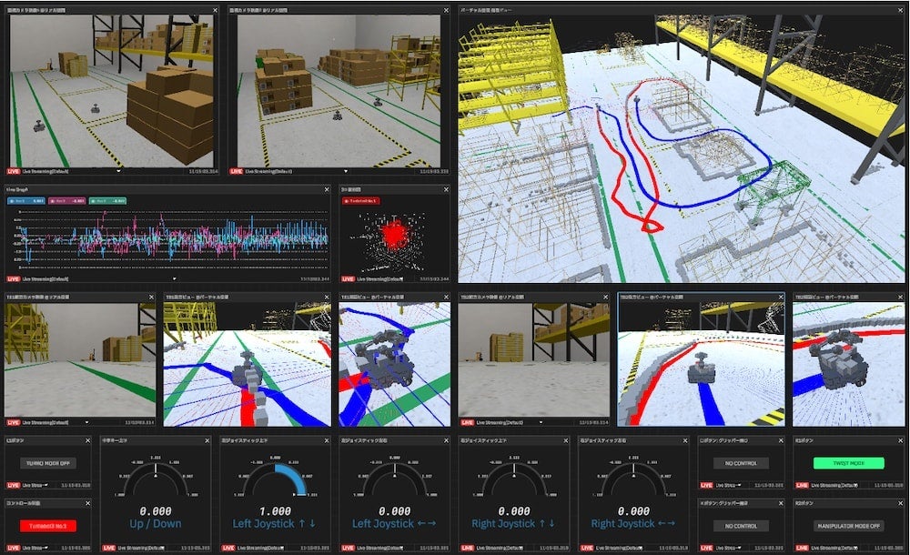 シミュレーション環境であるGazeboや可視化環境である Rvizなどとの連携によるデジタルツイン環境により、実機とバーチャル空間をintdash CONTROL CENTERで統合し、ロボット開発と運用におけるアジャイルなPDCAを実現します。