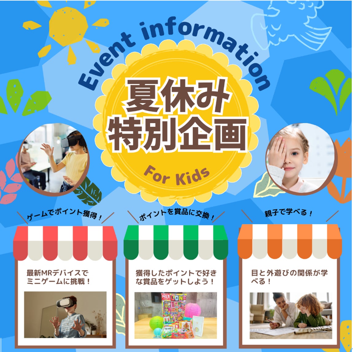今夏の日本は、記録的猛暑への警戒とともに、熱中症に対する警告も活発にされています。特に、小学生は、外遊び時間を制限され、夏休みを室内で過ごす時間が多くなることが予測されます。当社では、屋外活動の近視発症予防および抑制に着目し、目だけを屋外にいるような環境にするAR(拡張現実)*1デバイスを開発・販売しています。今回は、8月11日の山の日にちなみ、楽しく、目の外遊びを体験してもらうために、エンタメ系MR(複合現実)*2コンテンツと組み合わせたイベントを企画しました。イベントの最後には、今日からできるちょっとした目に良い生活習慣についてもご紹介します。家族で、目の外遊びを体験し、子供の近視予防につなげたいと考えています。