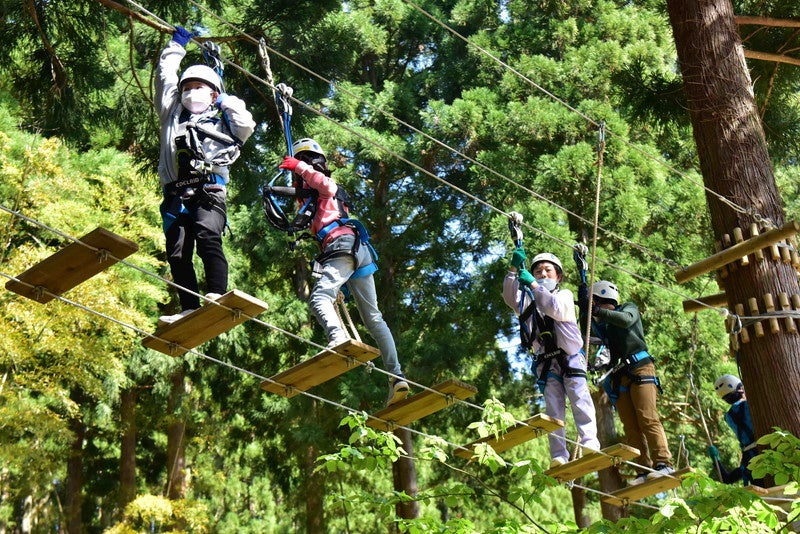 「アドベンチャーパーク」は樹上に広がる森のジャングルジムで、新設された「ジュニアディスカバリーコース」のほか「ディスカバリーコース」「キッズコース」「ツリークライムコース」等、様々なプログラムをご用意。