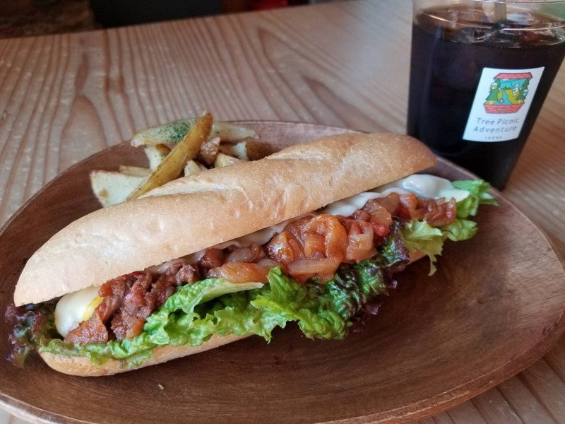 センターハウスにある「カフェピクニック」では、アスレチックの腹ごしらえにぴったりな池田町の食材を使ったメニューをご用意。商品は園内のお好きな場所でお召し上がりいただけます。風に揺れる葉の音や木漏れ日を感じられるオープンテラス、また薪ストーブのある店内でゆっくり過ごすのもおすすめです。