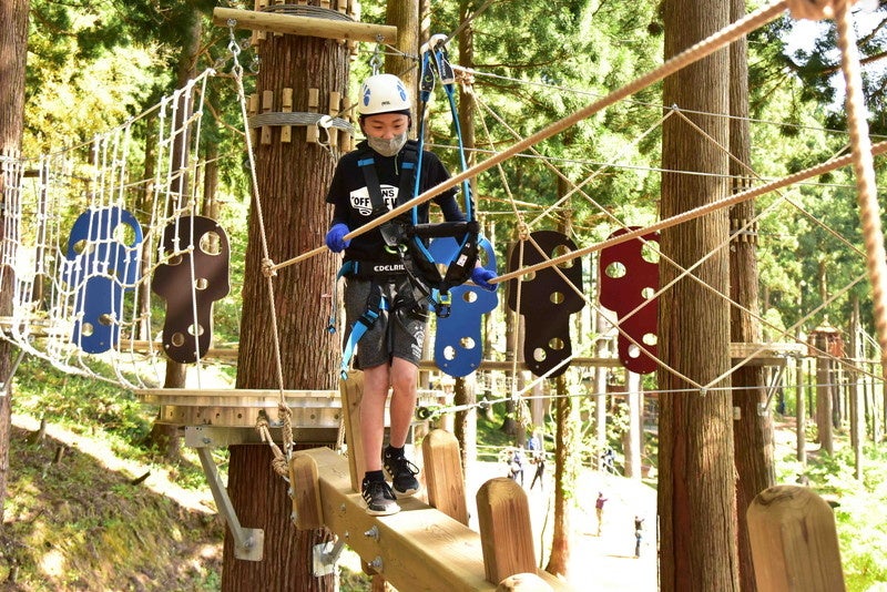 既存の「ディスカバリーコース」と「キッズコース」の中間層を想定した、115センチ以上のお子様を対象とした新コースです。「ディスカバリーコース(130センチ以上利用可能・小学生以下は20歳以上の保護者同伴要)」と同じ安全装備を着用・操作し14のエレメントに挑戦可能です。本格的なアスレチックへのエントリーコースとして、お子様の挑戦を応援します。